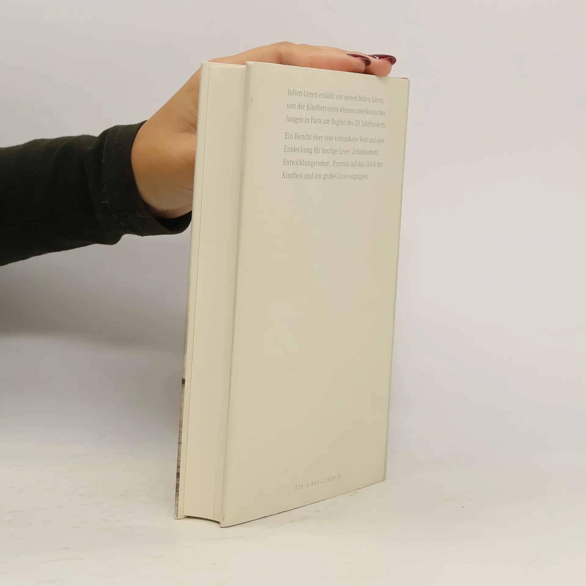 Die Kindheit eines kleinen amerikanischen Jungen in Paris, am Beginn des 20. Jahrhunderts. Julien Green lässt in seinen Erinnerungen die „Belle Époque“ auferstehen: das Klappern der Pferdehufe auf dem Pflaster, den Alltag ohne Radio und Telefon, die Schrecken eines strengen, unmenschlichen Schulsystems und die Geborgenheit in der bürgerlichen Familie. Erst als Frankreich in den Ersten Weltkrieg zieht, bricht auch für ihn ein neues Zeitalter an. Ein wunderbares Buch über eine versunkene Welt: Zeitdokument, Entwicklungsroman, Hymnus auf das Glück der Kindheit und ein großes Lesevergnügen.