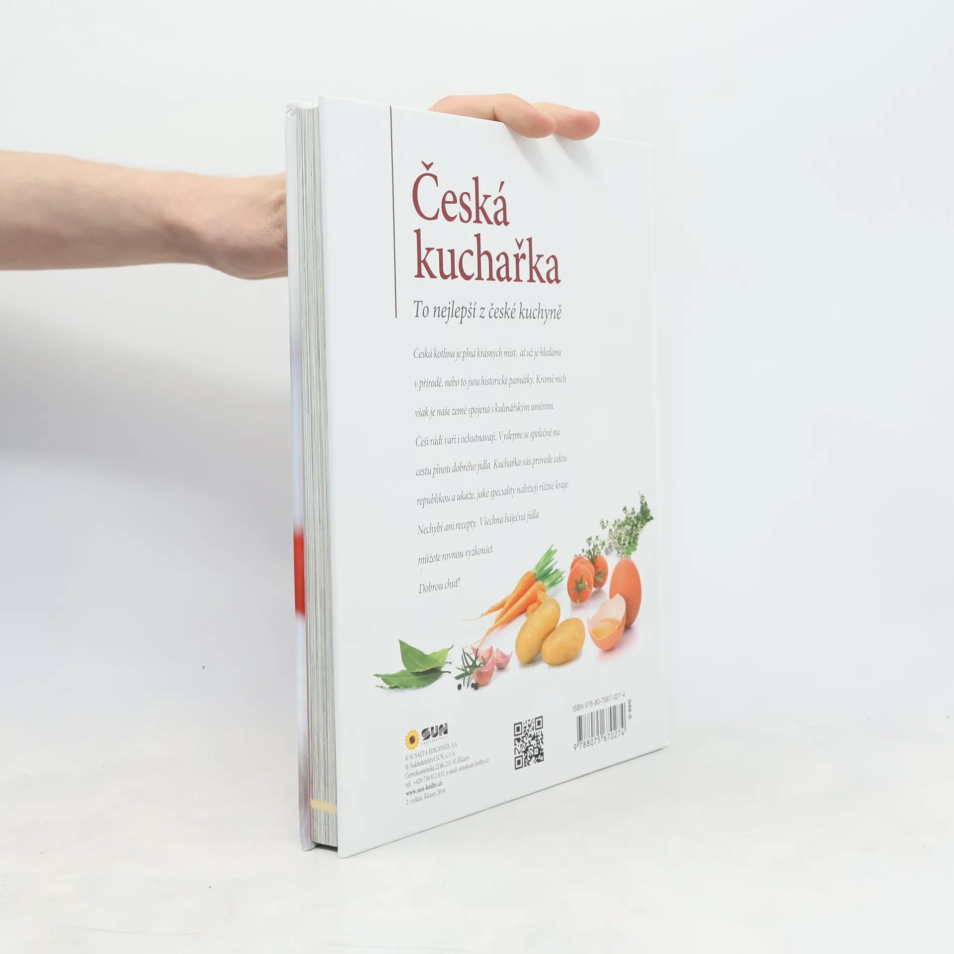 Česká kotlina je plná krásných míst, ať už je hledáme v přírodě, nebo to jsou historické památky. Kromě nich je však naše země spojená s kulinářským uměním. Češi rádi vaří i ochutnávají. Vydejme se společně na cestu plnou dobrého jídla. Kuchařka vás provede celou republikou a ukáže, jaké speciality nabízí různé kraje. Nechybí ani recepty. Všechna báječná jídla tak můžete rovnou vyzkušet. Dobrou chuť.