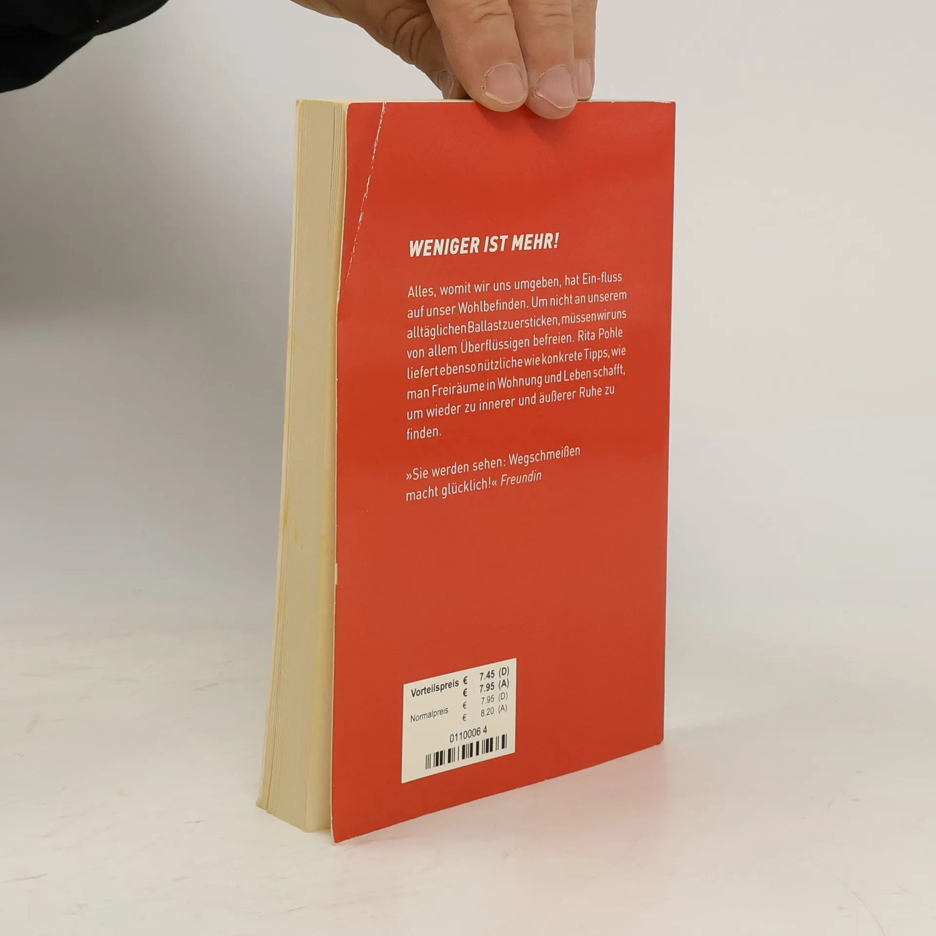 Szenen aus dem täglichen Leben: Bereits im Flur stolpert man über Kartons, die man schon immer wegwerfen wollte, der Kleiderschrank quillt über und in nicht gelesenen Zeitungen droht man zu ersticken. Kurz - wir kämpfen täglich mit unserem Gerümpel. Doch was brauchen wir wirklich, was macht uns glücklich? Und was ist Ballast, was belastet oder blockiert uns? Alles, womit wir uns umgeben, hat - so Rita Pohle - Einfluss auf unser Wohlbefinden. Darum weg mit allem, was stört! Weg mit den Dingen, die wir nicht mögen, mit den Menschen, die uns nerven, mit den Aktivitäten, die uns einfach zu viel werden. Bringen Sie Freiräume in Ihre Umgebung und in Ihr Leben.
