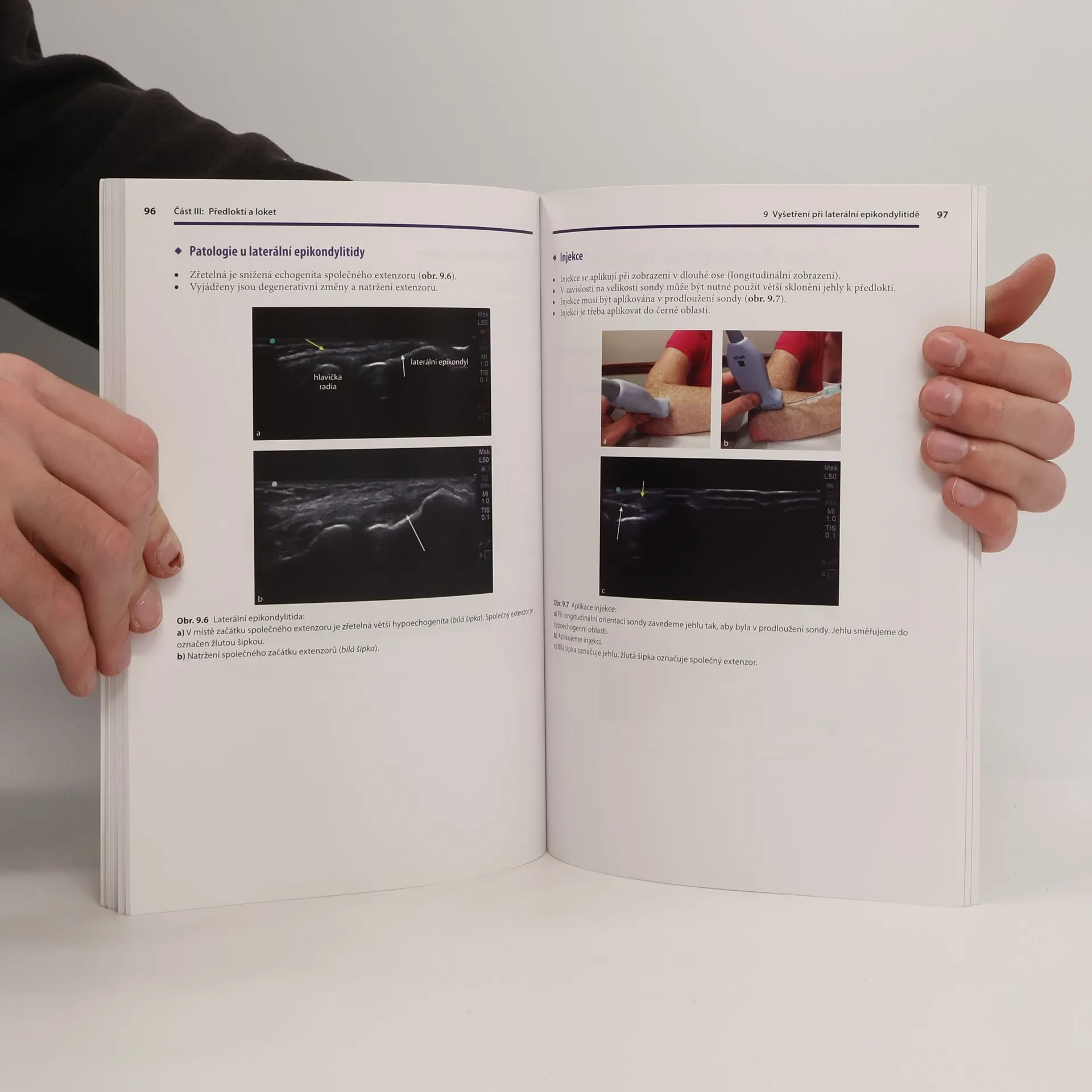 Kniha je určena odborníkům na zobrazovací metody a zejména lékařům prvního kontaktu, kteří se setkávají s úrazy a nemocemi ruky a celé horní končetiny jak na odděleních emergency, tak ve svých každodenních praxích (chirurgové, traumatologové, revmatologové, ale i další odbornosti). Didakticky skvěle napsaná publikace, která obsahuje na čtyři sta barevných obrázků a schémat, provede čtenáře úspěšně od začátků k pokročilé diagnostice. Kniha obsahuje 5 hlavních oddílů: • Úvod (základy UZV techniky v dané oblasti, optimalizace obrazu) • Prsty a zápěstí (je probráno i poškození šlach, karpální tunel a injekční léčba, záněty šlach dorzálního kompartmentu, zápěstí) • Předloktí a loket (vyšetřování nervů, laterálních epikondylů, kolaterálních vazů, distálních částí bicepsu) • Rameno (včetně injekčních aplikací a léčby adhezivní kapsulitidy) • Tkáně končetiny