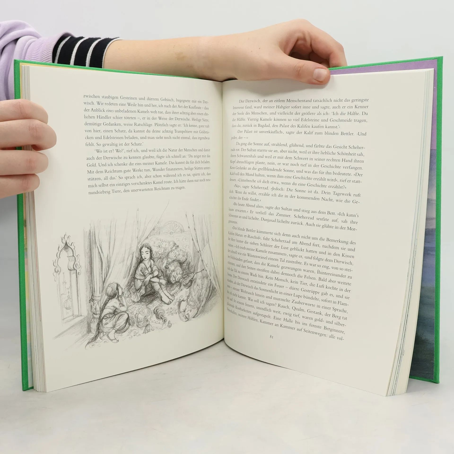 Urs Widmer hat die wundervollen Geschichten aus Tausendundeiner Nacht behutsam gerafft, ohne ihnen das orientalische Flair zu nehmen. Höchst anschaulich, deftig und kurzweilig erzählt er die sechs berühmtesten Geschichten der unsterblichen Scheherzad neu. Und damit die große Märchensammlung für alle Sinne »eine Quelle unendlichen Genusses, das reichste Bilderbuch der Welt« (Hermann Hesse) werde, hat Tatjana Hauptmann sich ans Werk gemacht, DIE Künstlerin, um die orientalische Üppigkeit und Subtilität ins Bild zu holen.