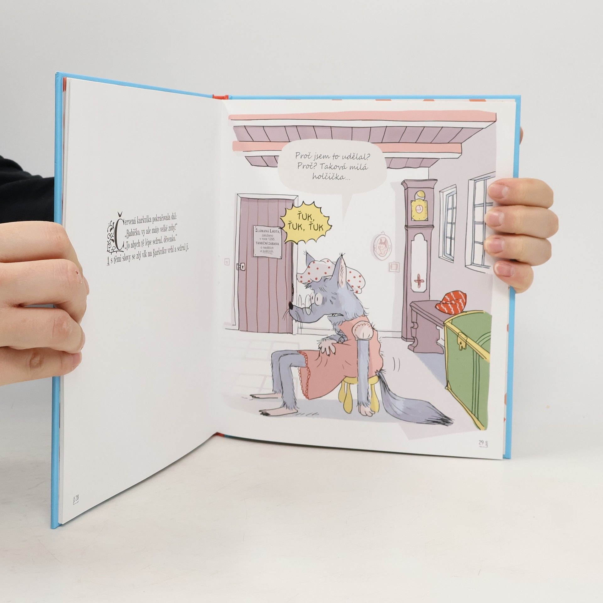 Klasická pohádka, netradiční ilustrace a komentáře hlavních hrdinů, které rozesmějí vás i vaše děti. Pohádková pohroma se valí! Červená karkulka na louce netrhá kytičky, ale píše esemesky, a vlka poté, co sežere babičku i Karkulku, trápí výčitky svědomí… Říkáte si, co je to za pohádky? To jsou pohádkové pohromy! I oblíbení hrdinové z pohádek chtějí držet krok s moderní dobou, a tak text, který všichni dobře známe, patřičně okomentují. Přečtěte si klasickou pohádku s vtipnými ilustracemi i komentáři, které pobaví vás i vaše děti. Konečně kniha, kterou si budete chtít číst každý večer!