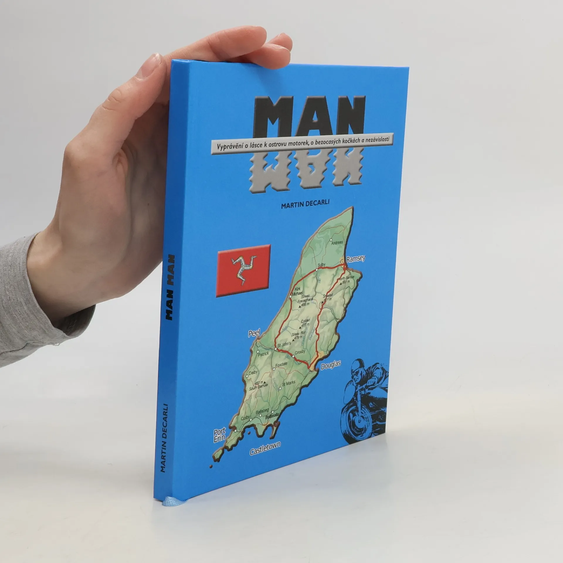 Ostrov Man pro motorkáře nemůže být obyčejným kusem pevniny, a to především kvůli tomu, že se zde každoročně koná jeden z nejslavnějších motocyklových závodů. Na Isle of Man je toho však zajímavého mnohem víc; například to, že je i přes svou miniaturní rozlohu samostatným státem, má nejstarší parlament světa, který už přes tisíc let zasedá jednou ročně pod širým nebem, nebo že na tamních mincích jsou místo státníků vyražené motorky v náklonu. Kočkám tam neroste ocas a ovce mají 4 rohy. A vůbec nejlepší je, že na silnicích tam nemají omezenou maximální rychlost.Mnohem víc se o ostrově v Irském moři i o slavné Tourist Trophy můžete dočíst v knize MAN MAN, kterou napsal motocyklový novinář Martin Decarli. Svoje zážitky ze svých tří cest na Man popisuje svým nenapodobitelným stylem na 112 stranách textu, které jsou doplněny 40 stranami fotografií na křídovém papíře. MAN MAN je vůbec první česky psaná kniha, přibližující tento malinký státeček. Pokud o cestě na ostrov Man uvažujete, najdete v ní spoustu užitečných informací. A jestli jste zatím takový nápad nedostali, dost možná pro vás bude inspirací.