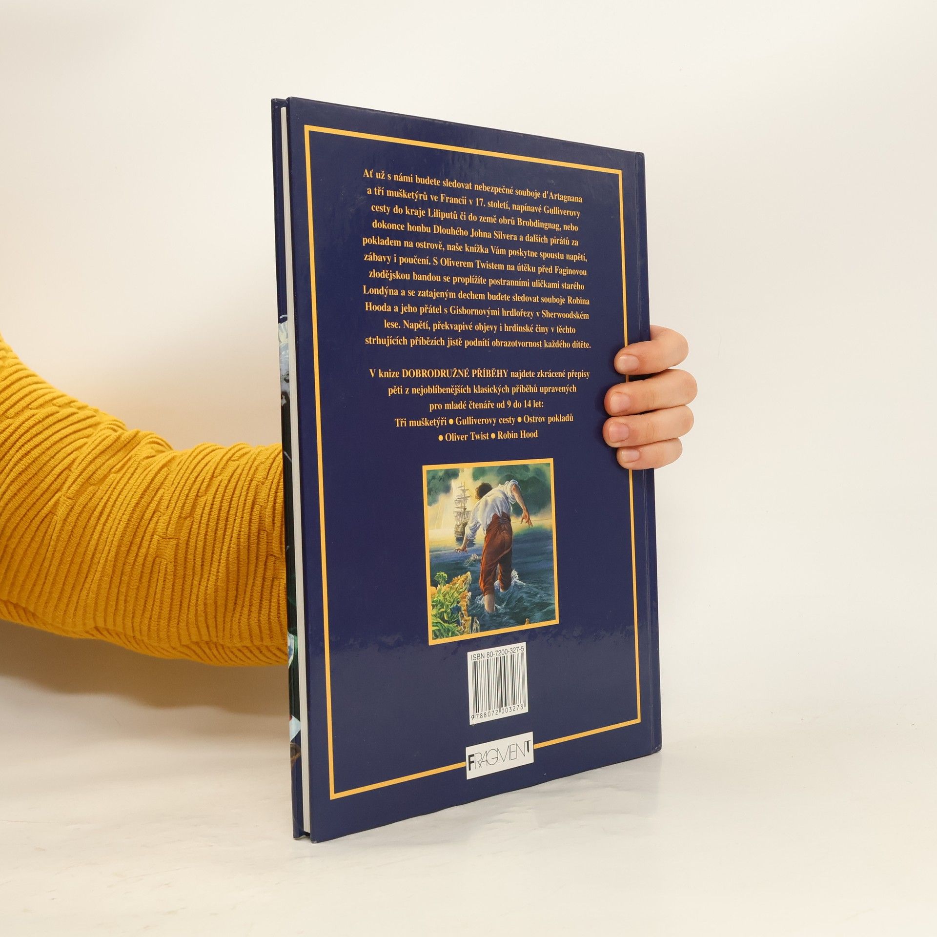 Celkem pět převyprávěných klasických dobrodružných příběhů od známých autorů a to Tři Mušketýři, Gulliverovy cesty, Ostrov pokladů, Oliver Twist a Robin Hood v jedné knize s krásnými ilustracemi ve zkrácených verzích. Každý příběh je od jiné anglické autorky a každý je doprovázen ilustracemi od jiného malíře.