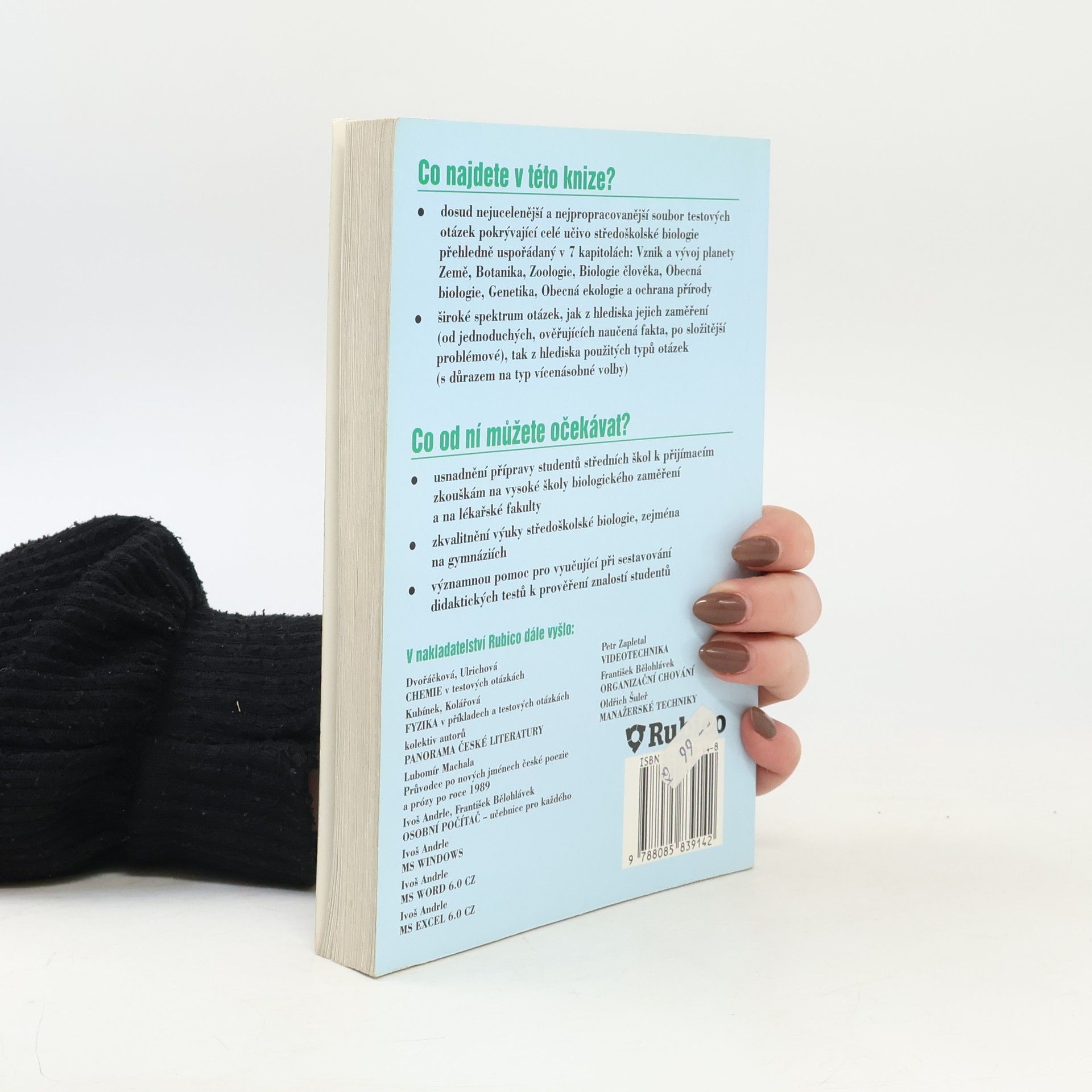 V této knize najdete dosud nejucelenější a nejpropracovanější soubor testových otázek pokrývající celé učivo středoškolské biologie přehledně uspořádaný v 7 kapitolách: Vznik a vývoj planety Země, Botanika, Zoologie, Biologie člověka, Obecná biologie, Genetika, Obecná ekologie a ochrana přírody.