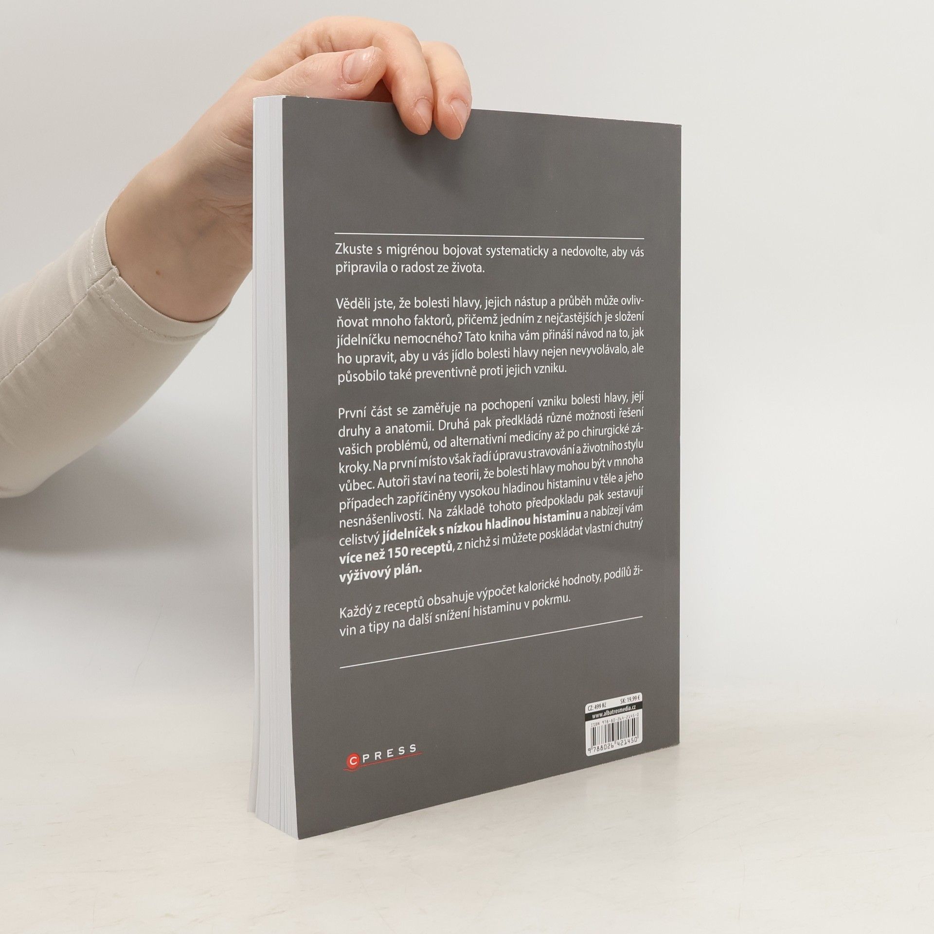 Zkuste s migrénou bojovat systematicky a nedovolte, aby vás připravila o radost ze života. Věděli jste, že bolesti hlavy, jejich nástup a průběh může ovlivňovat mnoho faktorů, přičemž jedním z nejčastějších je složení jídelníčku nemocného? Tato kniha vám přináší návod na to, jak ho upravit, aby u vás jídlo bolesti hlavy nejen nevyvolávalo, ale působilo také preventivně proti jejich vzniku. První část se zaměřuje na pochopení vzniku bolesti hlavy, její druhy anatomii. Druhá pak předkládá různé možnosti řešení vašich problémů, od alternativní medicíny až po chirurgické zákroky. Na první místo však staví úpravu stravování a životního stylu vůbec. Autoři staví na teorii, že bolesti hlavy mohou být v mnoha případech zapříčiněny vysokou hladinou histaminu v těle a jeho nesnášenlivostí. Na základě tohoto předpokladu pak sestavují celistvý jídelníček s nízkou hladinou histaminu a nabízejí vám více než 150 receptů, z nichž si můžete poskládat vlastní chutný výživový plán. Každý z receptů obsahuje výpočet kalorické hodnoty, podílů živin a tipy na další snížení histaminu v pokrmu.