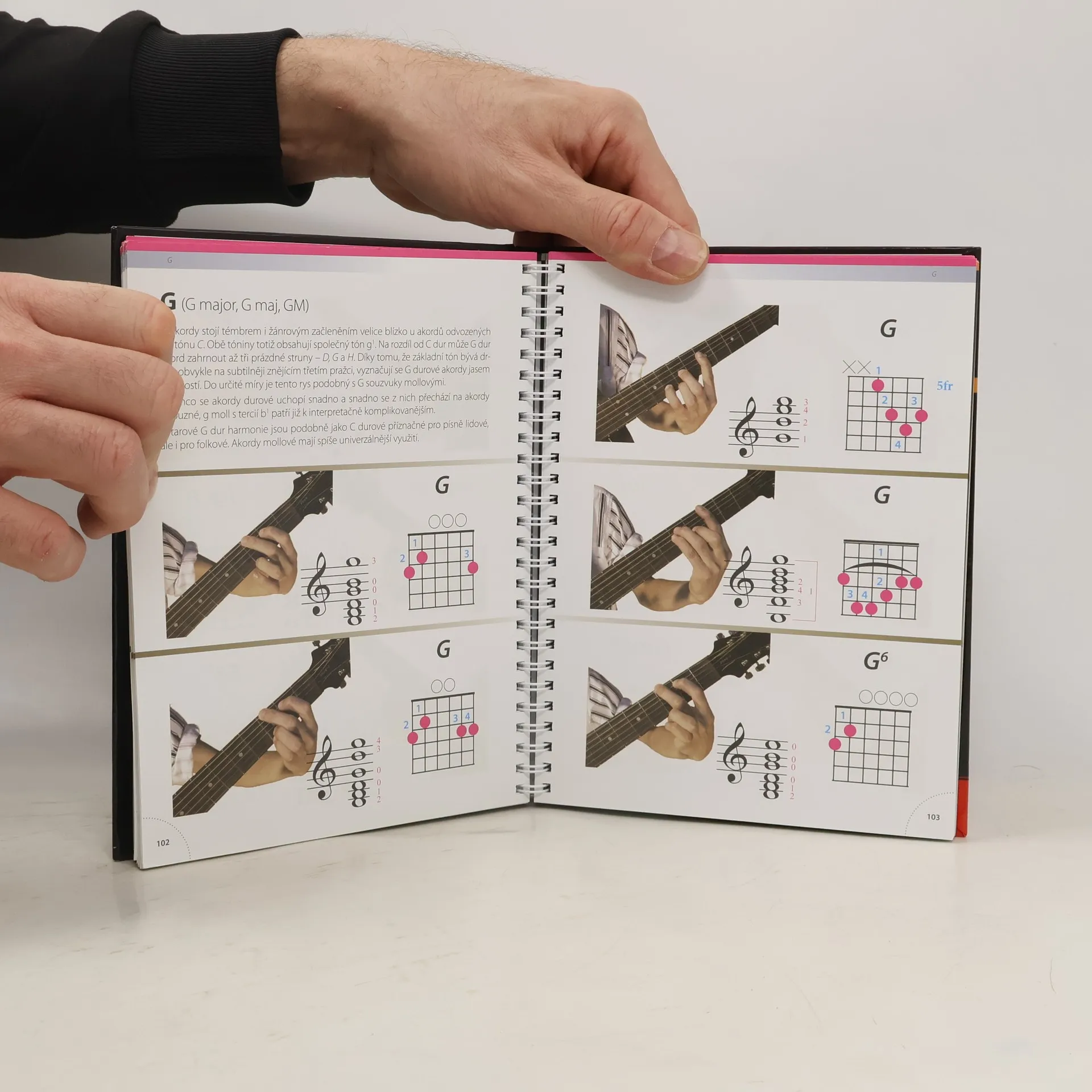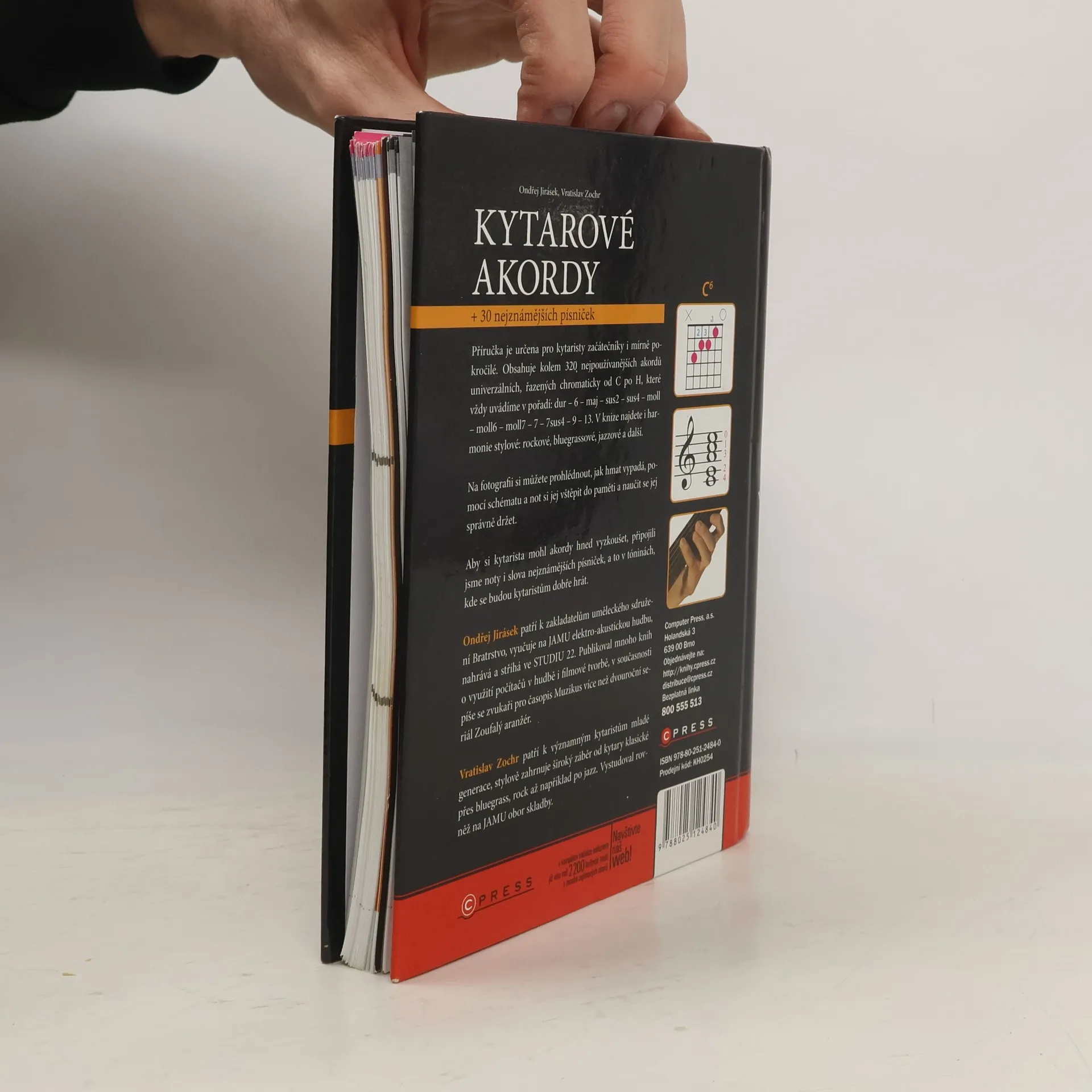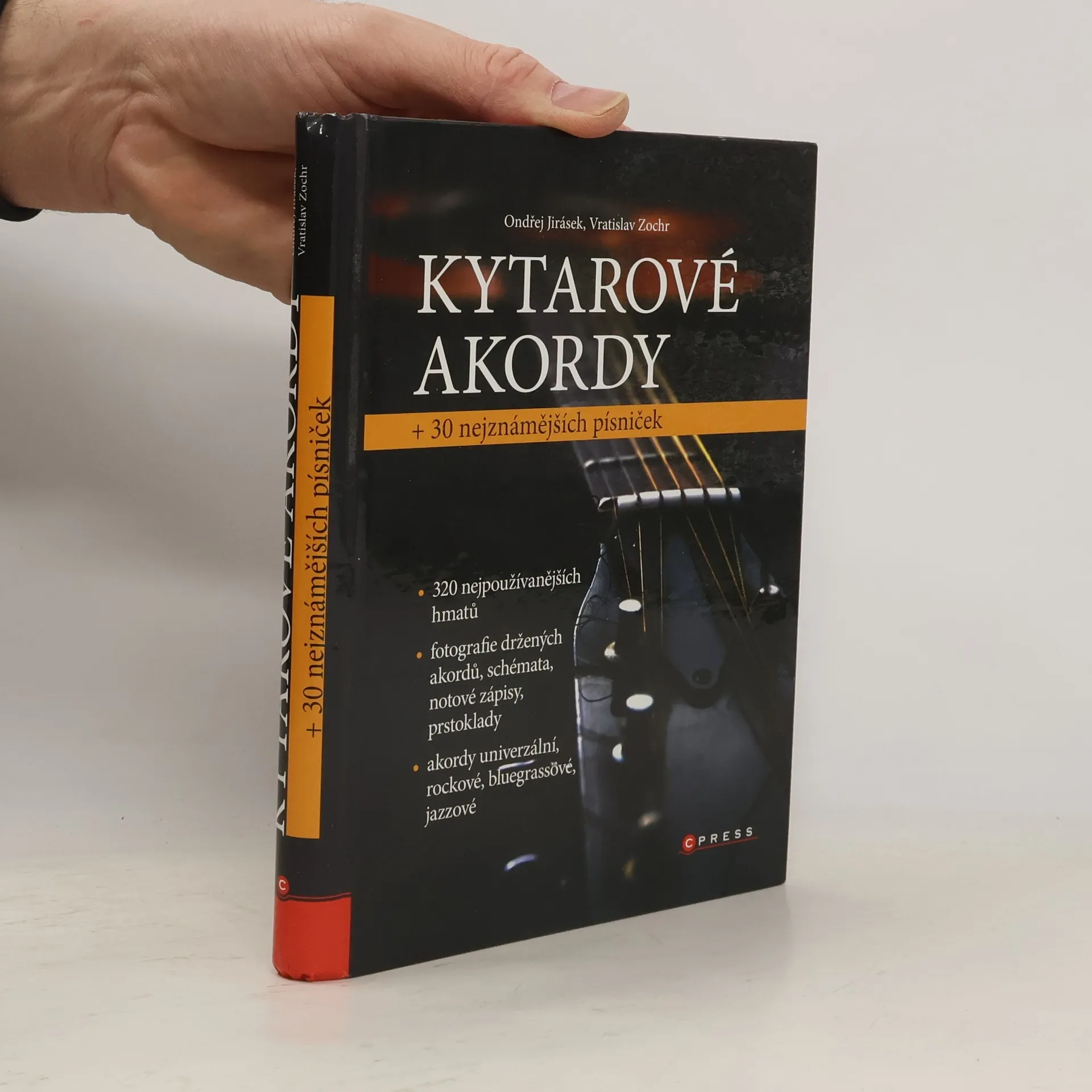 Hrajete na kytaru a potřebujete mít při ruce knížku s kytarovými hmaty? V publikaci najdete schématické zobrazení všech důležitých akordů, fotografie levé ruky držící hmaty i akordy vypsané v notách. Titul může proto využít jak ten, kdo hraje bez not, tak i muzikant, který se v notovém zápisu orientuje. Knihu stačí mít při ruce a když si nemůžete na některý z akordů vzpomenout, stačí nalistovat správnou stránku a osvěžit si, jak se akord drží a ze kterých tónů je složen. Titul navíc obsahuje základy hudební nauky i kapitolu s 30 nejznámějšími českými písničkami doplněnými o akordy!