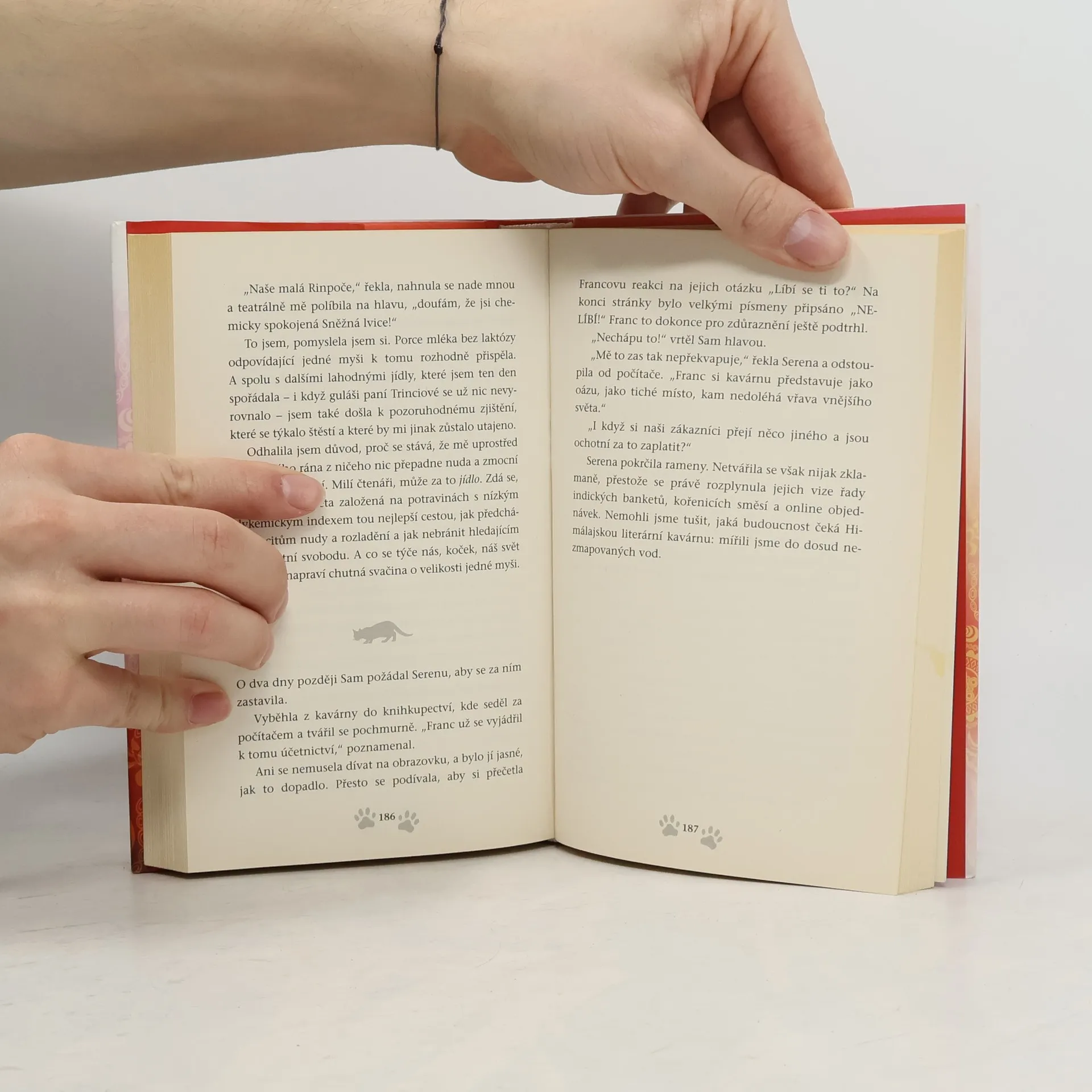 Než dalajlama odjede na přednáškové turné do Ameriky, uloží své milované kočce Jesce (JSK, Její Svatosti Kočce) určitý úkol: objevit pravou příčinu štěstí. Plnění úkolu zavede kočku do netušených dobrodružství! Napínavá honička ulicemi McLeod Gandže ji dovede k nečekanému zjištění o tom, jak je nebezpečná sebestřednost. Setkání s tajemným jogínem Tarčinem jí odhalí vlastní minulost – což má dramatické následky pro nás pro všechny. Útržky rozhovorů, které vyslechne v Himálajské literární kavárně, jí pomůžou odhalit podobnosti mezi vědou a buddhismem v klíčovém tématu štěstí – ať už při tom poslouchá vážené univerzitní profesory a psychology, vysoce postavené lamy nebo slavné spisovatele.Jiskřivá moudrost, srdečnost a kapka rošťáctví v Dalajlamově kočce a umění příst nám kouzelným způsobem ukazuje, proč se z Jesky stává jedna z nejmilovanějších koček na světě. Jaký je tedy skutečný důvod předení? Toto tajemství dalajlama šeptem prozradí, až se vrátí z cesty – jenom uším Jesky a těm, s nimiž má jeho kočka karmické spojení… což jste, milí čtenáři, právě vy! Tato knížka je volným pokračováním knížky Dalajlamova kočka.