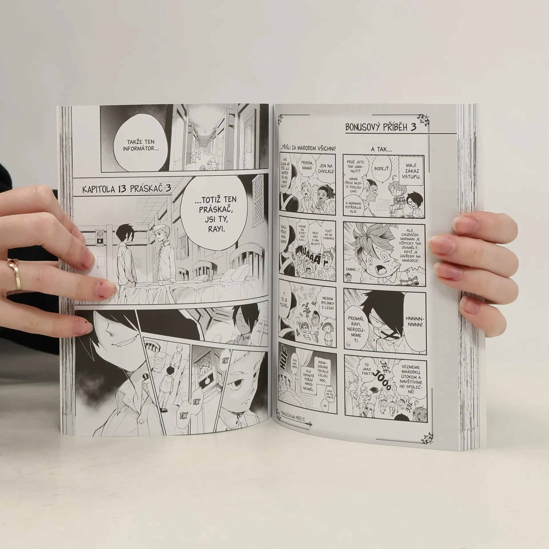 Děti v sirotčinci Grace Field House pátrají po pravdě a nacházejí stopy… jenže nejsou sami. Stahuje se kolem nich smyčka, kterou nastražila sestra Krone. A je možné, že je mezi nimi zrádce, který donáší zprávy přímo Mamá?