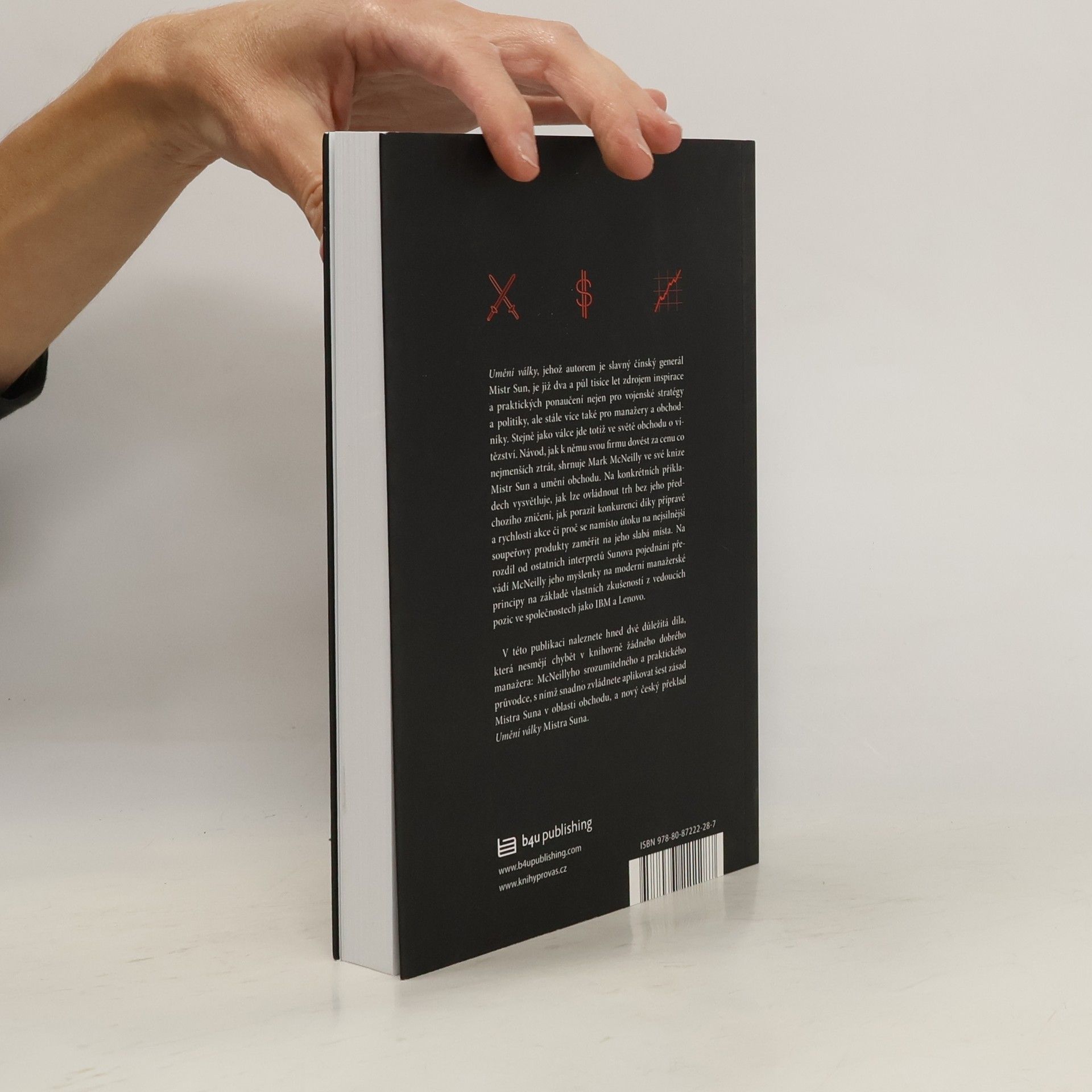 Umění války, jehož autorem je slavný čínský generál Mistr Sun, je již dva a půl tisíce let zdrojem inspirace a praktických ponaučení nejen pro vojenské stratégy a politiky, ale stále více také pro manažery a obchodníky. Stejně jako ve válce jde totiž i ve světě obchodu o vítězství. Jak k němu svou firmu dovést za cenu co nejmenších ztrát shrnuje Marc McNeilly ve své knize Mistr Sun a umění obchodu. Na konkrétních příkladech vysvětluje, jak lze ovládnout trh bez jeho předchozího zničení, jak porazit konkurenci díky přípravě a rychlosti akce, či proč se namísto útoku na nejsilnější soupeřovy produkty zaměřit na jeho slabá místa. Na rozdíl od ostatních interpretů převádí McNeilly Sunovy myšlenky na moderní manažerské principy na základě vlastních zkušeností ve vedení společností jako je IBM a Lenovo. V této knize naleznete hned dvě důležitá díla, která nesmí chybět v knihovně žádného dobrého manažera: McNeillyho srozumitelného a praktického průvodce, s nímž snadno zvládnete aplikovat šest zásad Mistra Suna v oblasti obchodu, a nový český překlad Umění války Mistra Suna. Kniha Mistr Sun a umění obchodu sklidila mezinárodní úspěch.