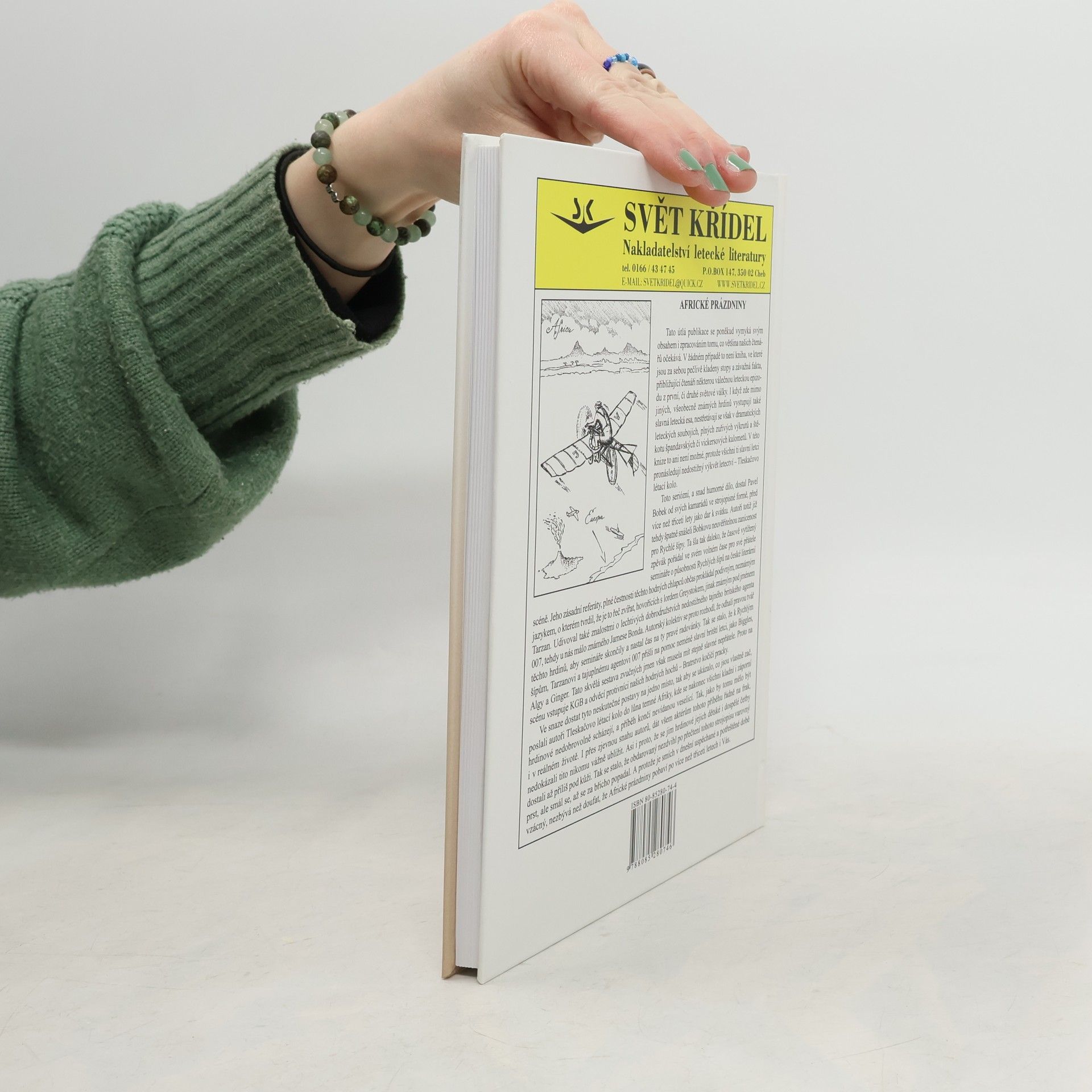 Tato útlá publikace se vymyká obvyklému obsahu knih z nakladatelství Svět křídel. Nepředstavuje pečlivě uspořádané stopy a fakta o válečných leteckých epizodách z první či druhé světové války. I když se zde objevují známá letecká esa, chybí dramatické souboje, protože všichni ti slavní letci pronásledují Tleskačovo létající kolo. Pavel Bobek obdržel tento seriózní a možná humorný text od svých přátel jako dárek před více než třiceti lety. Jeho vášeň pro Rychlé šípy byla tak silná, že pořádal semináře o jejich vlivu na českou literaturu, obohacené podivným jazykem, který nazýval řečí zvířat. Autoři se rozhodli odhalit pravou tvář těchto hrdinů, aby ukončili Bobkovy semináře a přivedli na scénu slavné letce jako Bíggles, Algy a Ginger, kteří se postavili KGB a Bratrstvu kočičí pracky. V příběhu se Tleskačovo létající kolo dostává do temné Afriky, kde se kladní i záporní hrdinové setkávají a končí nevídanou veselicí. I přes snahu autorů o potrestání postav se nikomu vážně neublížilo, což vedlo k tomu, že obdarovaný se smál, místo aby varoval. V dnešní uspěchané době je smích vzácný, a tak se autoři snaží, aby Africké prázdniny pobavily i po více než třiceti letech.