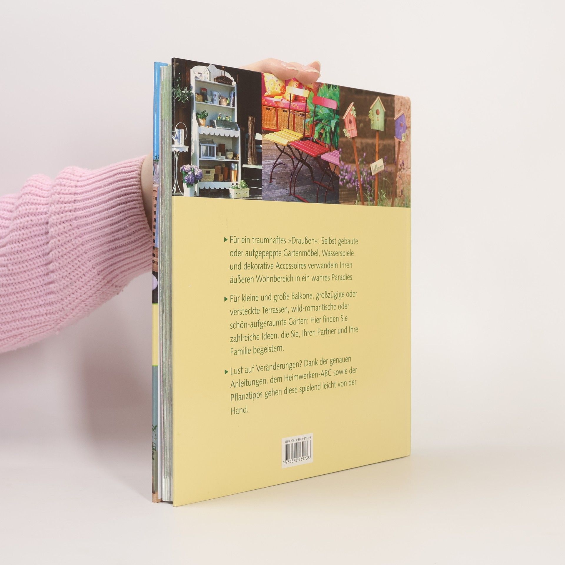Für ein traumhaftes „Draußen“: Selbst gebaute oder aufgepeppte Gartenmöbel, Wasserspiele und dekorative Accessoires verwandeln Ihren äußeren Wohnbereich in ein wahres Paradies. Für kleine und große Balkone, großzügige oder versteckte Terrassen, wild-romantische oder schön aufgeräumte Gärten: Hier finden Sie zahlreiche Ideen, die Sie, Ihren Partner und Ihre Familie begeistern. Lust auf Veränderungen? Dank der genauen Anleitungen, dem Heimwerken-ABC sowie der Pflanztipps gehen diese spielend leicht von der Hand. 160 Seiten, 24 x 26,5 cm, Hardcover, Vorlagen im Buch