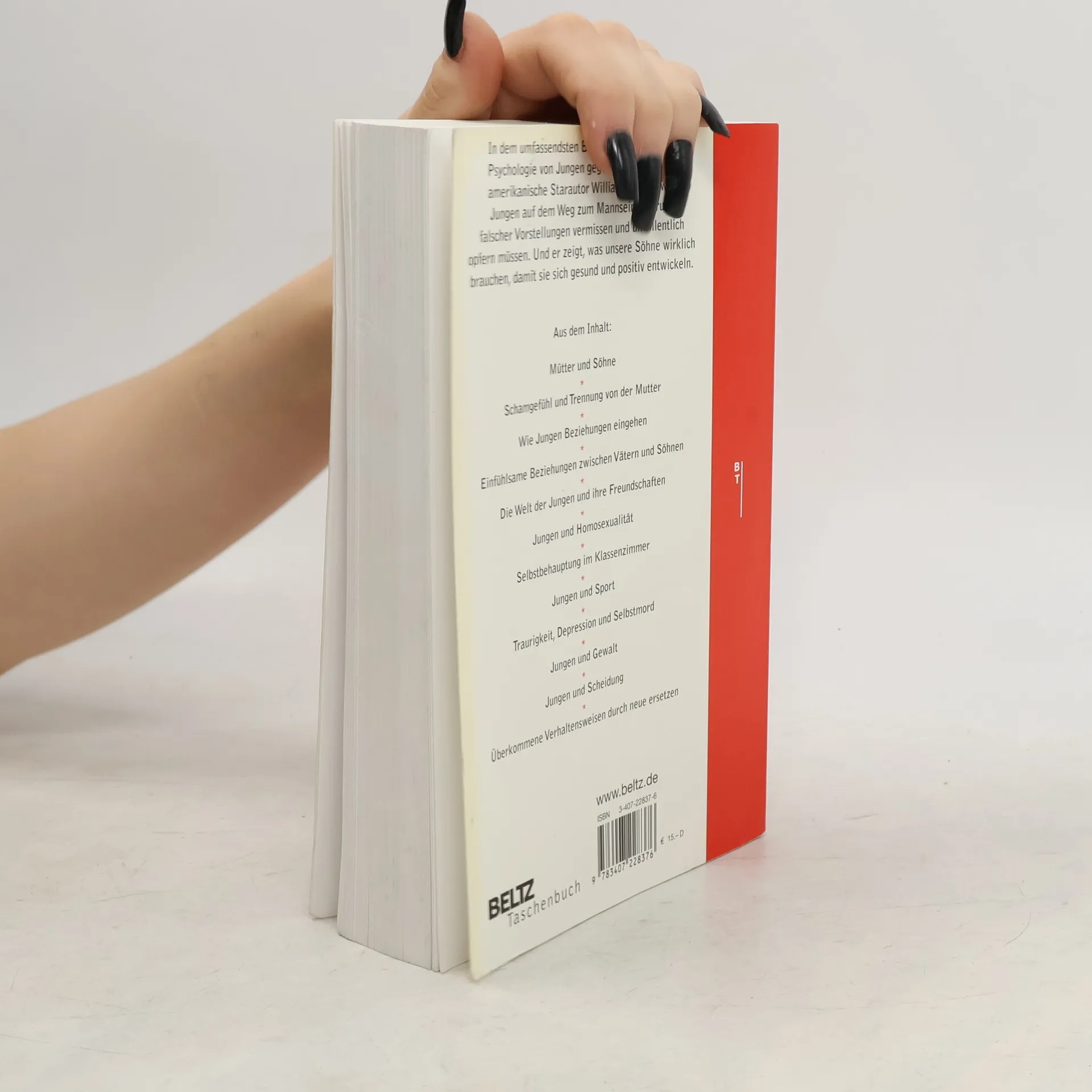 Unsere Söhne haben Probleme. Und diese Probleme sind gravierender, als wir denken. Selbst diejenigen, die ganz "normal" wirken und die mit ihrem Leben dem Anschein nach ganz gut zurechtkommen, sind davon betroffen. Die Vielzahl widersprüchlicher Erwartungen, denen unsere Söhne von Seiten der Gesellschaft als Jungen und später dann als Männer ausgesetzt sind, ist verwirrend, und so fühlen sich viele von ihnen ohne Orientierung - mit weit reichenden Folgen. Jungen über Jungen: "Es ist wirklich schwierig, ein Junge zu sein, wenn man von dir erwartet, dass du nicht über deine Gefühle sprichst. Du musst mit allem allein klarkommen. Bei Mädchen nimmt jeder an, dass sie sofort mit jemandem sprechen. Als Junge darfst du das einfach nicht. Es gibt so viele Dinge, die ein normaler Mensch wahrscheinlich tun würde, die einem Jungen aber einfach verboten sind." Calvin, 15 Jahre "Nur weil du ein Junge bist, behandeln dich die Menschen manchmal wie einen Rüpel. Würden sie ihre Augen öffnen, würden sie erkennen, dass die meisten von uns eigentlich ganz nette Kerle sind." Dirk, 17 Jahre "Du musst immer deine Deckung hochhalten - tust du das nicht, sagen sie, dass du nicht cool bist." Jan, 14 Jahre "In Wirklichkeit unterscheiden wir uns nicht sehr von Mädchen. Wir tun die Dinge nur auf etwas andere Art." Tim, 13 Jahre "Wenn ich niedergeschlagen bin, kann ich es gut verbergen. Es ist, als trüge ich eine Maske." Bernd, 14 Jahre
