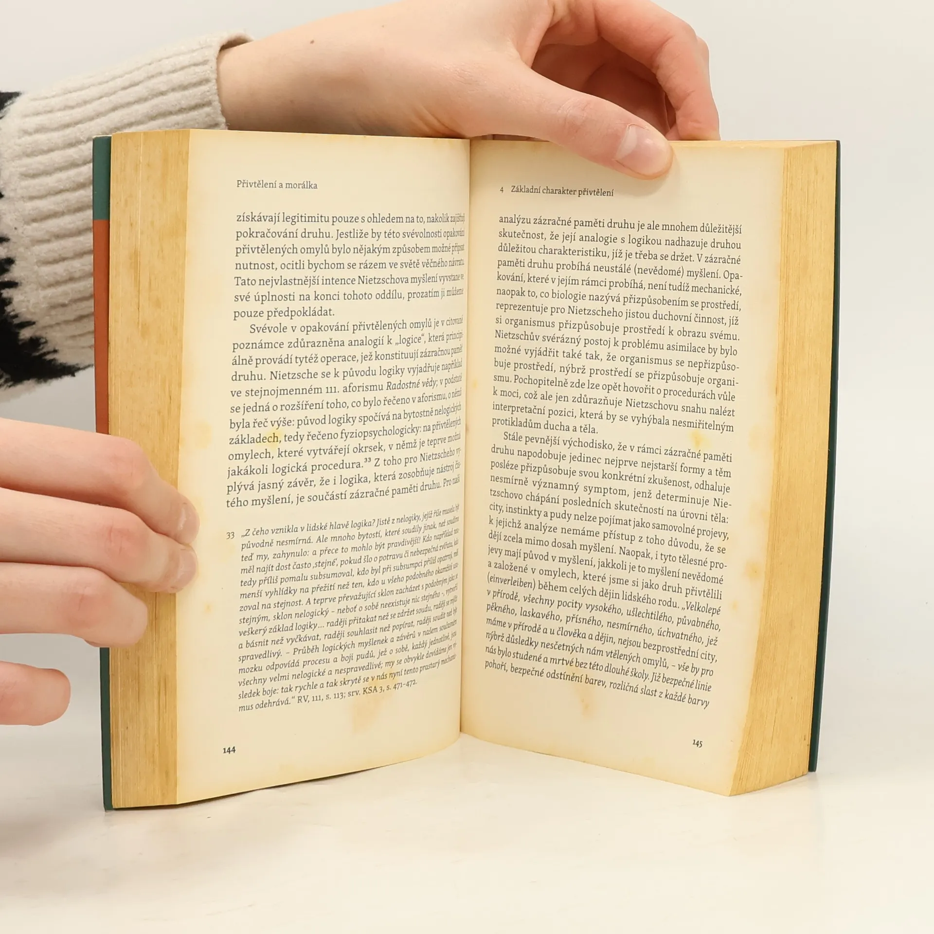 Kniha se nejprve pokouší vymezit metodologické principy Nietzschova zkoumání těla a tělesnosti prostřednictvím pojmu fyziopsychogie (Physio-Psychologie). Jedná se o specifický způsob chápání morálních soudů jako symptomů tělesných stavů. Metodou fyziopsychologie Nietzsche odhaluje za morálními soudy to, co je v nich zamlčeno, a ukazuje, že jejich zdrojem je vždy nějaký pud či instinkt. První oddíl pojednává o procesu přivtělení (Einverleibung), který stojí podle Nietzscheho v základech antropogeneze. Aby se člověk ustanovil jako druh schopný přežití, musel si přivtělit určitá schémata, jež tvoří jeho základní druhovou výbavu. Tato přivtělená schémata nutně musela být omylem, jak ale Nietzsche zdůrazňuje, v antropogenezi nešlo o pravdu, nýbrž o pevné zakotvení člověka ve světě. Druhý oddíl přistupuje k problému těla a tělesnosti z odlišného hlediska. Důraz je kladen na vztah těla a morálky, přičemž do popředí vystupuje pojem vůle k moci. Při bližším pohledu se však ukáže, že v prvním oddílu je vůle k moci rovněž neustále přítomna, nikoli ovšem jako hlavní předmět zájmu, nýbrž jako interpretační nástroj. Dalo by se proto říci, že vůle k moci spojuje oba oddíly a syntetizuje jejich perspektivy.