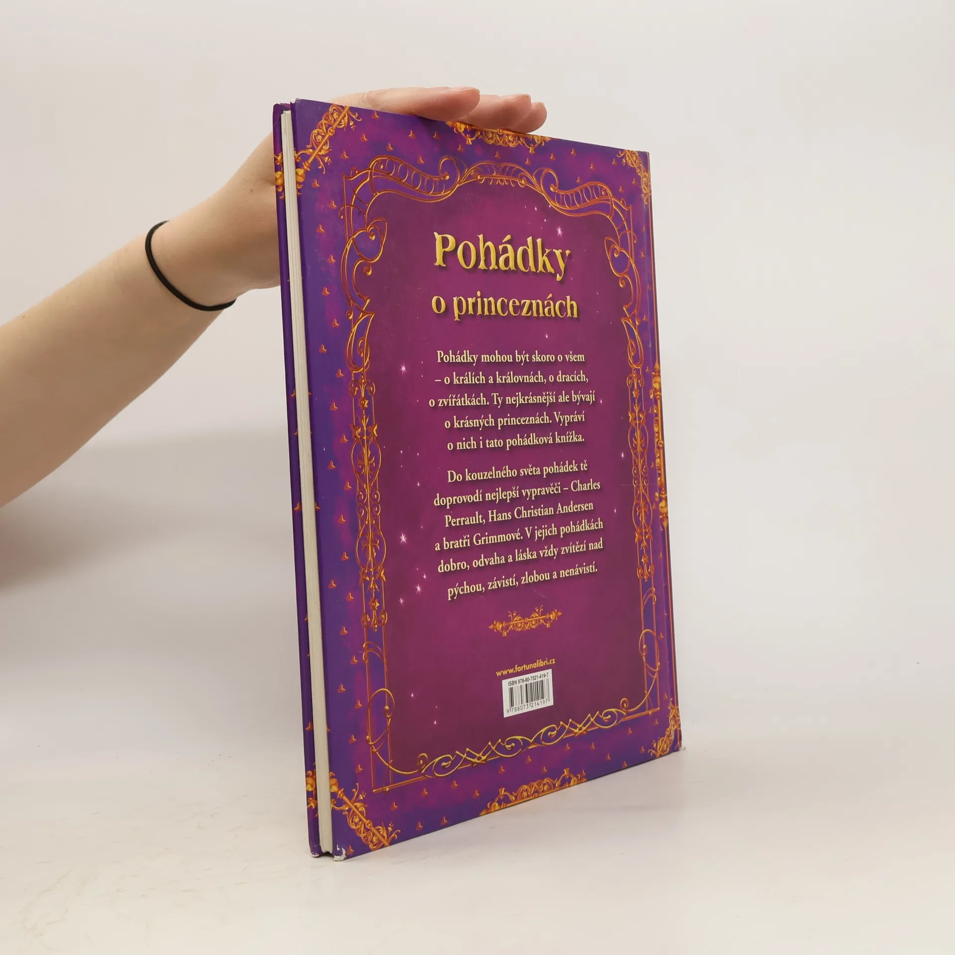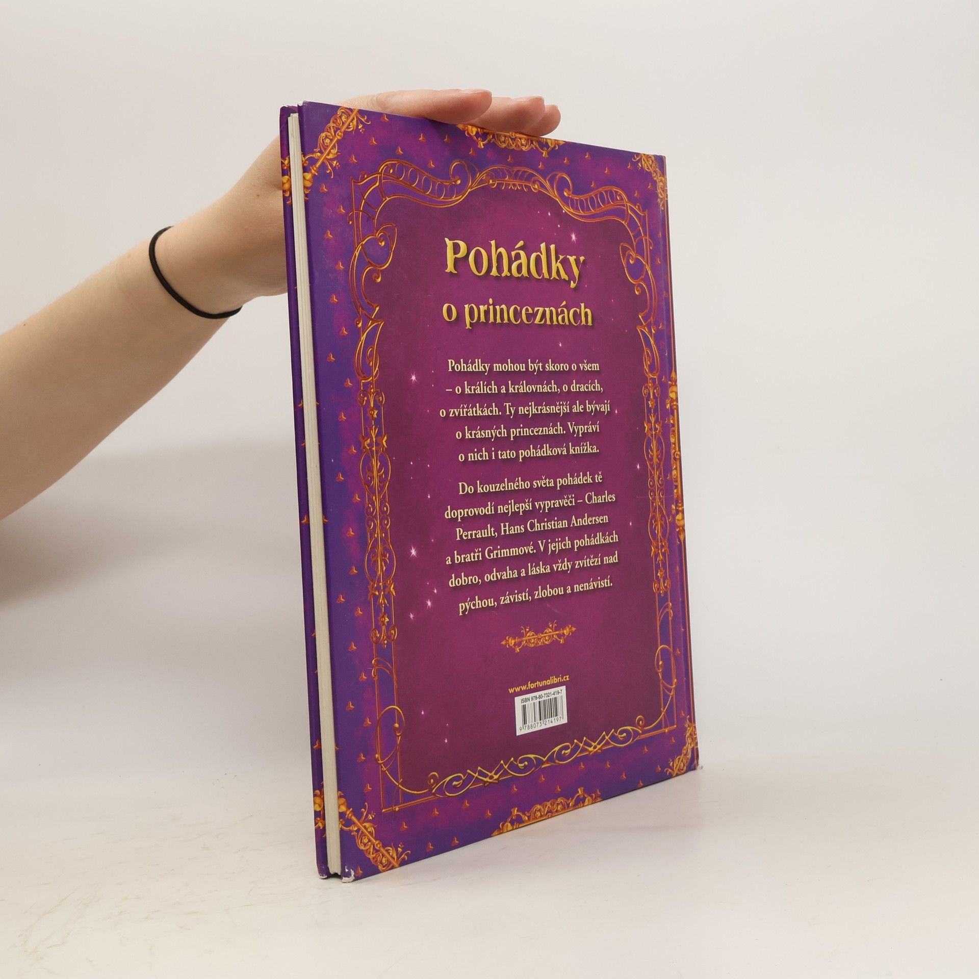 Pohádky- ty nejkrásnější bývají o princeznách. Vypráví o nich i tato knížka. Do kouzelného světa pohádek tě doprovodí nejlepší vypravěči- Charles Perrault, Hans Christian Andersen a bratři Grimmové. V jejich pohádkách dobro, odvaha a láska vždy zvítězí nad pýchou, závistí, zlobou a nenávistí.