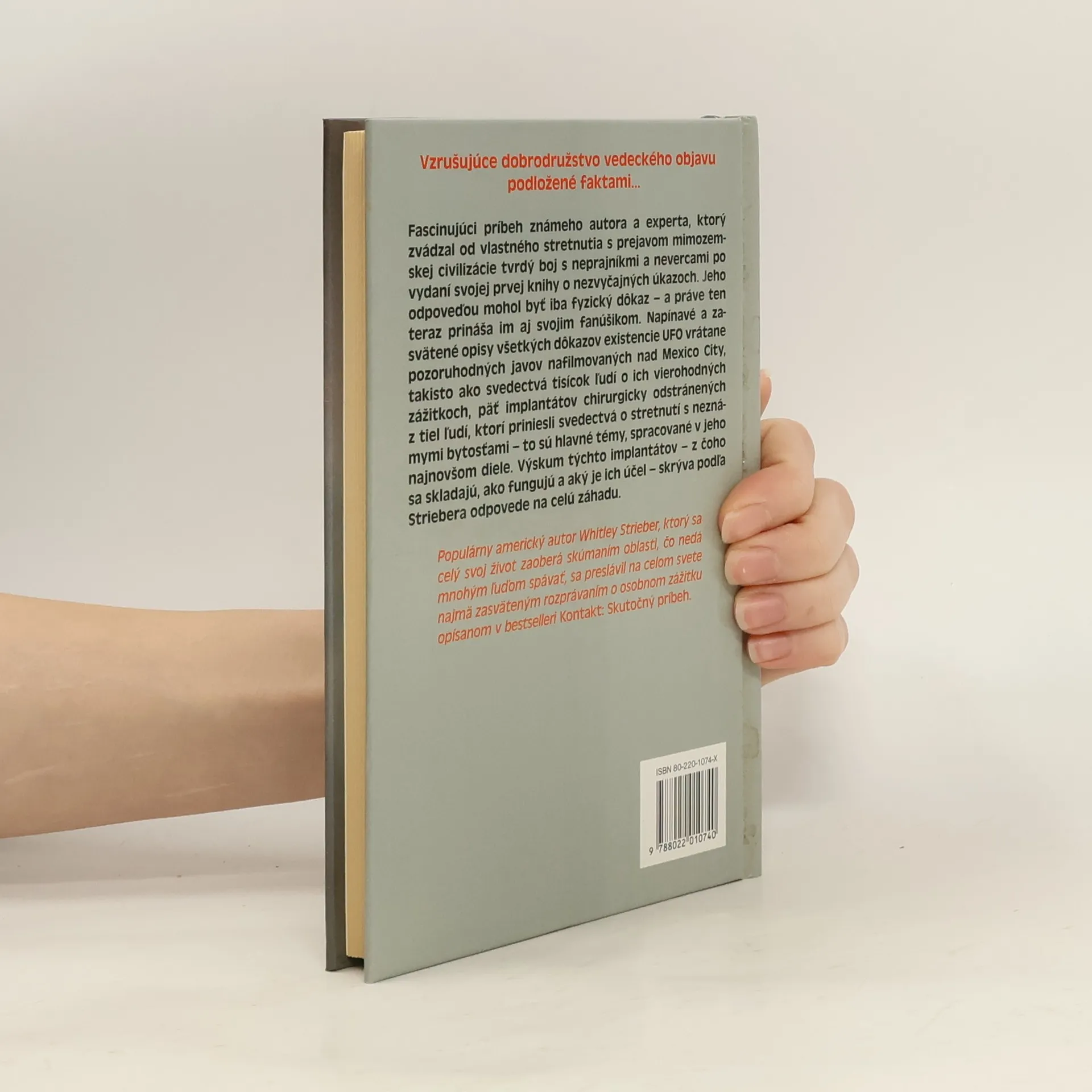 Fascinujúci príbeh známeho autora a experta, ktorý zvádzal od vlastného stretnutia s prejavom mimozemskej civilizácie tvrdý boj s neprajníkmi a nevercami po vydaní svojej prvej knihy o nezvyčajných úkazoch. Jeho odpoveďou mohol byť iba fyzický dôkaz - a práve ten teraz prináša im aj svojim fanúšikom. Napínavé a zasvätené opisy všetkých dôkazov existencie UFO vrátane pozoruhodných javov nafilmovaných nad Mexico City, takisto ako svedectvá tisícok ľudí o ich vierohodných zážitkoch, päť implantátov chirurgicky odstránených z tiel ľudí, ktoré priniesli svedectvá o stretnutí s neznámymi bytosťami - to sú hlavné témy, spracované v jeho najnovšom diele. Výskum týchto implantátov - z čoho sa skladajú, ako fungujú a aký je ich účel - skrýva podľa Strebera odpovede na celú záhadu.