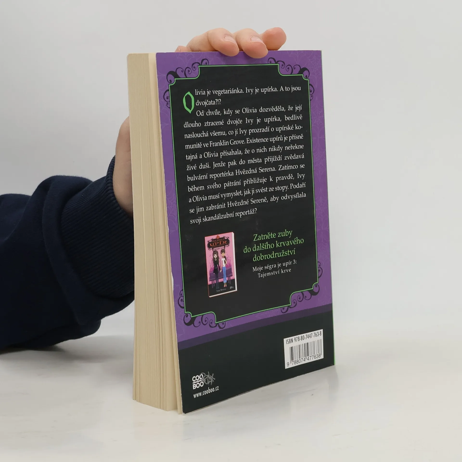 Olivia je vegetariánka. Ivy je upírka. A to jsou dvojčata?!? Od chvíle, kdy se Olivia dozvěděla, že její dlouho ztracené dvojče Ivy je upírka, bedlivě naslouchá všemu, co jí Ivy prozradí o upírské komunitě ve Franklin Grove. Existence upírů je přísně tajná a Olivia přísahala, že o nich nikdy neřekne žádné živé duši. Jenže pak do města přijíždí zvědavá bulvární reportérka Hvězdná Serena. Zatímco se během svého pátrání přibližuje k pravdě, Ivy a Olivia musí vymyslet, jak ji svést ze stopy. Podaří se jim zabránit Hvězdné Sereně, aby odvysílala svoji skandálzubní reportáž?