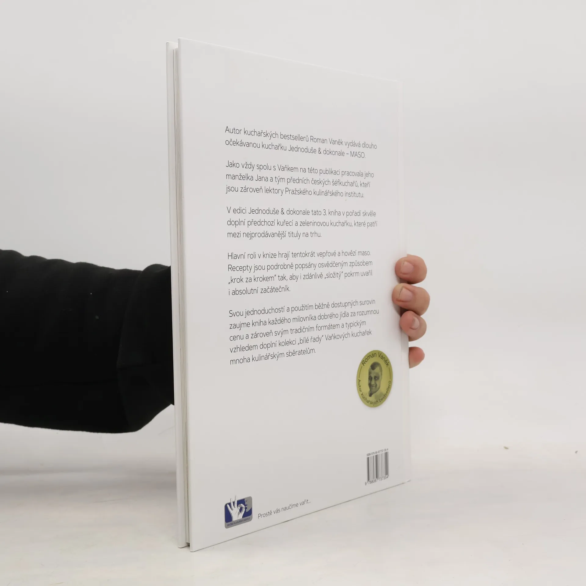 Autor kuchařských bestsellerů Roman Vaněk vydává dlouho očekávanou kuchařku Jednoduše & dokonale – MASO. Jako vždy spolu s Vaňkem na této publikaci pracovala jeho manželka Jana a tým předních českých šéfkuchařů, kteří jsou zároveň lektory Pražského kulinářského institutu. V edici Jednoduše & dokonale tato 3. kniha v pořadí skvěle doplní předchozí kuřecí a zeleninovou kuchařku, které patří mezi nejprodávanější tituly na trhu. Hlavní roli v knize hrají tentokrát vepřové a hovězí maso. Recepty jsou podrobně popsány osvědčeným způsobem „krok za krokem“ tak, aby i zdánlivě „složitý“ pokrm uvařil i absolutní začátečník. Svou jednoduchostí a použitím běžně dostupných surovin zaujme kniha každého milovníka dobrého jídla za rozumnou cenu a zároveň svým tradičním formátem a typickým vzhledem doplní kolekci „bílé řady“ Vaňkových kuchařek mnoha kulinářským sběratelům.