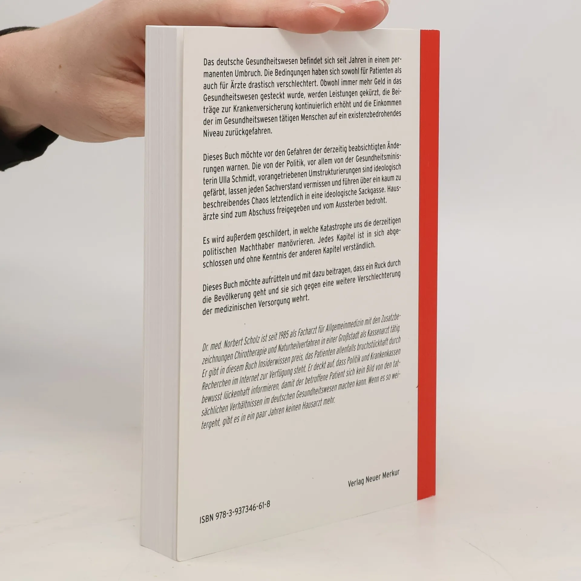 Das deutsche Gesundheitswesen befindet sich seit Jahren in einem permanenten Umbruch. Die Bedingungen haben sich sowohl für Patienten als auch für Ärzte drastisch verschlechtert. Obwohl immer mehr Geld in das Gesundheitswesen gesteckt wurde, werden Leistungen gekürzt, die Beiträge zur Krankenversicherung kontinuierlich erhöht und die Einkommen der im Gesundheitswesen tätigen Menschen auf ein existenzbedrohendes Niveau zurückgefahren. Dieses Buch möchte vor den Gefahren der derzeitig beabsichtigten Änderungen warnen. Die von der Politik, vor allem von der Gesundheitsministerin Ulla Schmidt, vorangetriebenen Umstrukturierungen sind ideologisch gefärbt, lassen jeden Sachverstand vermissen und führen über ein kaum zu beschreibendes Chaos letztendlich in eine ideologische Sackgasse. Hausärzte sind zum Abschuss freigegeben und vom Aussterben bedroht. Es wird außerdem geschildert, in welche Katastrophe uns die derzeitigen politischen Machthaber manövrieren. Jedes Kapitel ist in sich abgeschlossen und ohne Kenntnis der anderen Kapitel verständlich. Dieses Buch möchte aufrütteln und mit dazu beitragen, dass ein Ruck durch die Bevölkerung geht und sie sich gegen eine weitere Verschlechterung der medizinischen Versorgung wehrt.