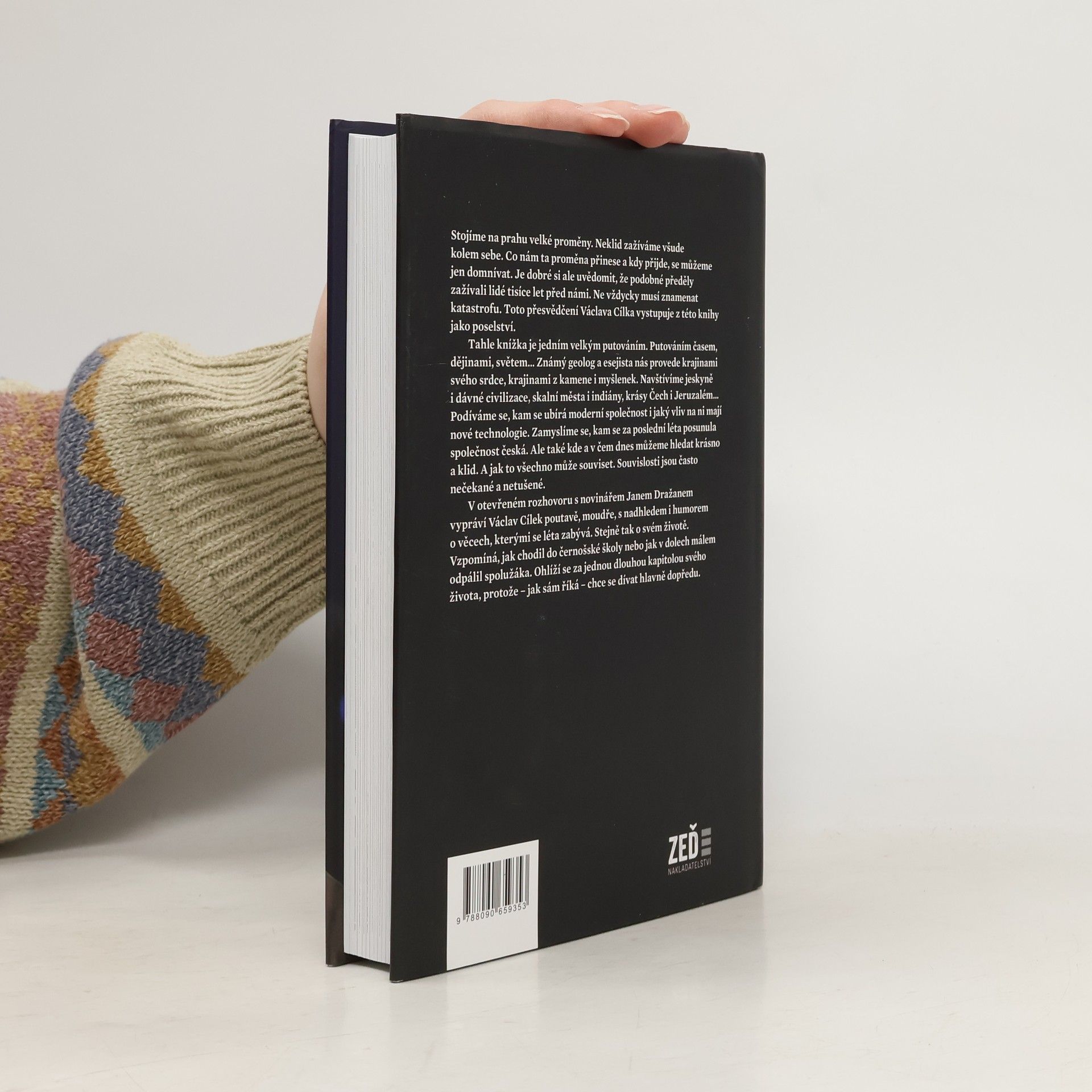 Stojíme na prahu velké proměny. Neklid zažíváme všude kolem sebe. Co nám ta proměna přinese a kdy přijde, se můžeme jen domnívat. Je dobré si ale uvědomit, že podobné předěly zažívali lidé tisíce let před námi. Ne vždycky musí znamenat katastrofu. Toto přesvědčení Václava Cílka vystupuje z této knížky jako poselství. Tahle knížka je jedním velkým putováním. Putováním časem, dějinami, světem… Známý geolog a esejista nás provede krajinami svého srdce, krajinami z kamene i myšlenek. Navštívíme jeskyně i dávné civilizace, skalní města i indiány, krásy Čech i Jeruzalém... Podíváme se, kam se ubírá moderní společnost i jaký vliv na ni mají nové technologie. Zamyslíme se, kam se za poslední léta posunula společnost česká. Ale také kde a v čem dnes můžeme hledat krásno a klid. A jak to všechno může souviset. Souvislosti jsou často nečekané a netušené. V otevřeném rozhovoru s novinářem Janem Dražanem vypráví Václav Cílek poutavě, moudře, s nadhledem i humorem o věcech, kterými se léta zabývá. Stejně tak o svém životě. Vzpomíná, jak chodil do černošské školy nebo jak v dolech málem odpálil spolužáka. Ohlíží se za jednou dlouhou kapitolou svého života, protože – jak sám říká – chce se dívat hlavně dopředu.