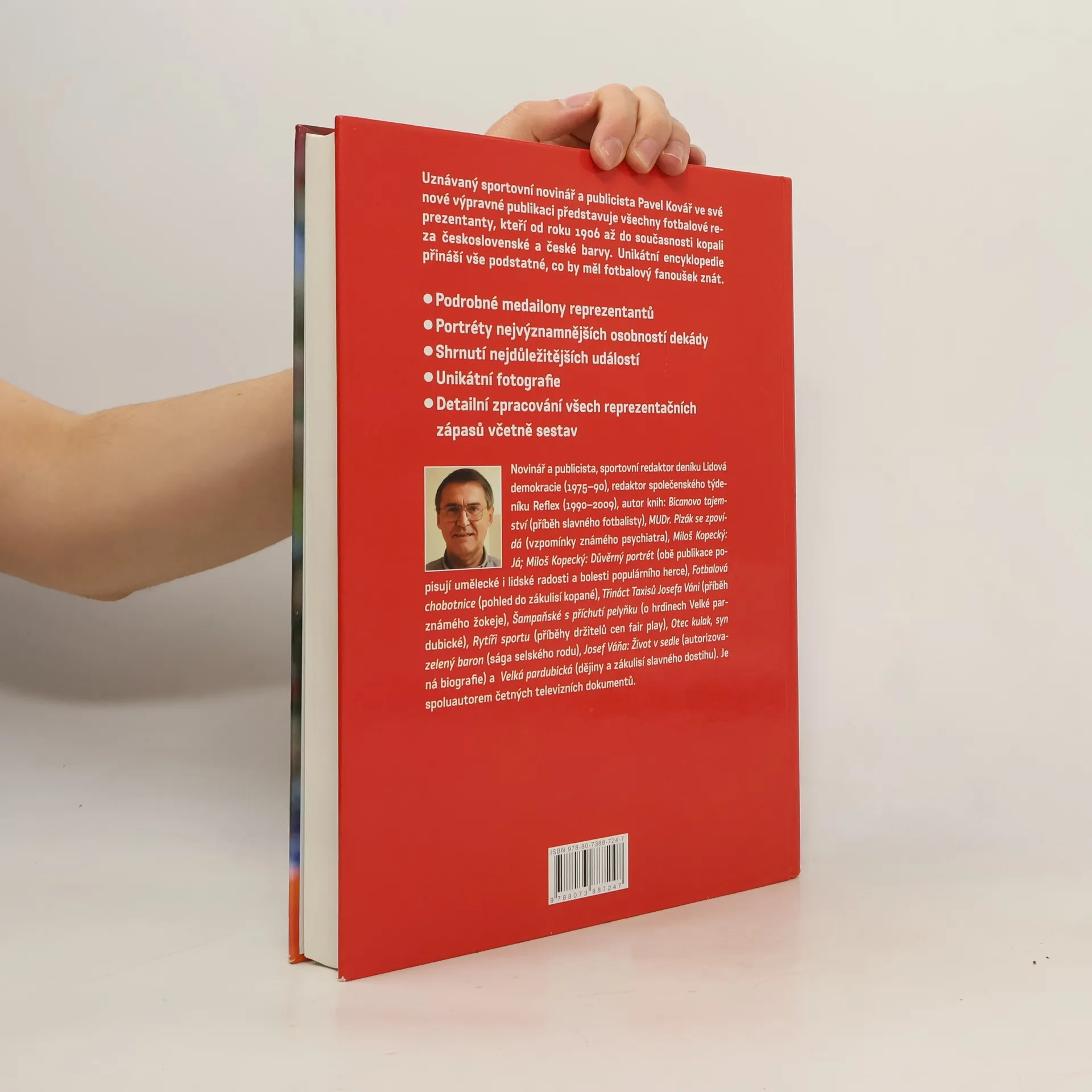 Uznávaný sportovní novinář a publicista Pavel Kovář ve své nové výpravné publikaci představuje všechny fotbalové reprezentanty, kteří od roku 1906 až do současnosti kopali za československé a české barvy. Unikátní encyklopedie přináší vše podstatné, co by měl fotbalový fanoušek znát.
