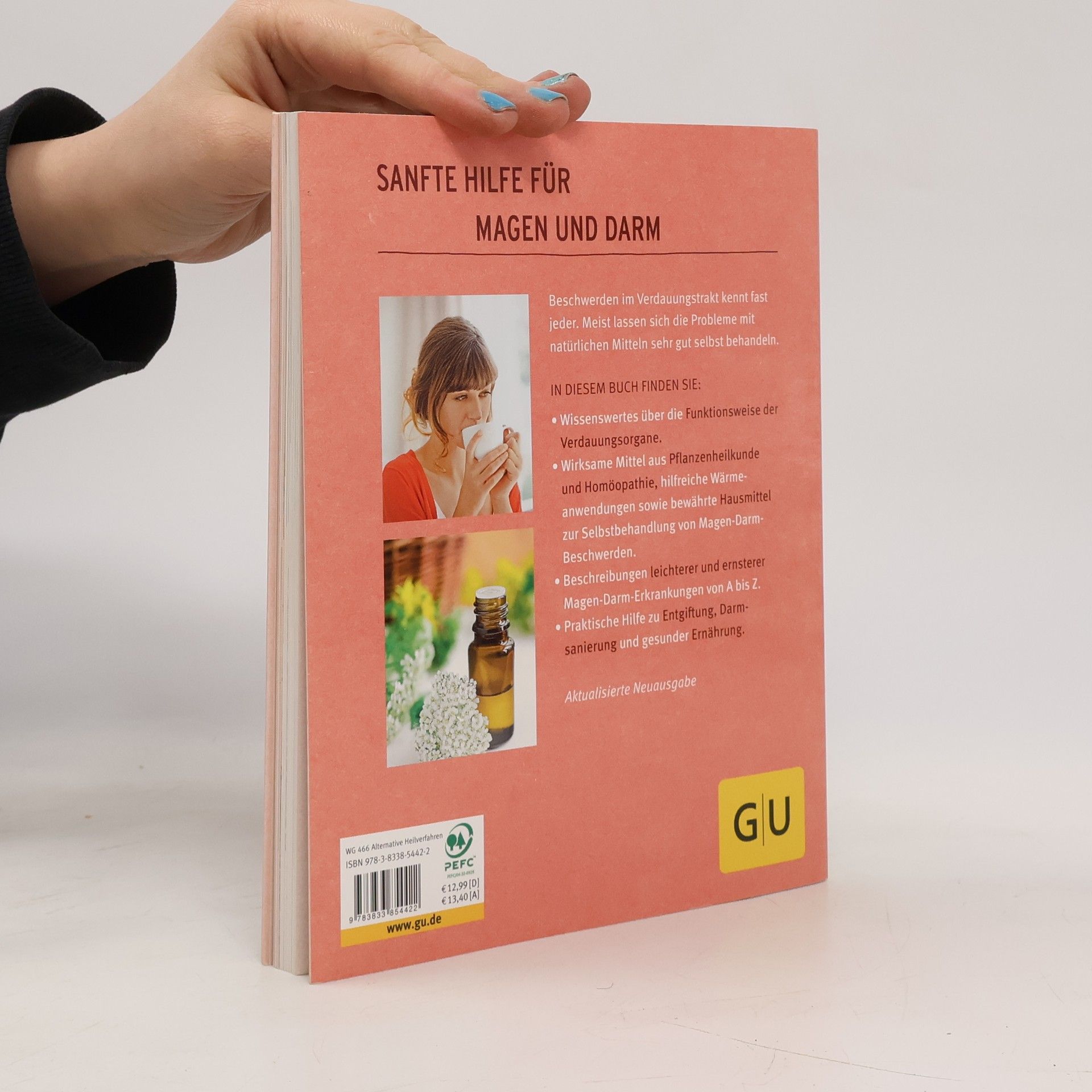 Sanfte Hilfe für Magen-Darm-Probleme Niemand sollte sich mit dem Leidensdruck abfinden, der mit stressbedingten Magenschmerzen, ständigen Blähungen oder Durchfall, häufigem Sodbrennen oder mit den unangenehmen Auswirkungen eines trägen Darms verbunden ist. Hier kann gerade die Naturheilkunde wertvolle Dienste leisten: Sie bietet bewährte Methoden, mit denen Verdauungsbeschwerden auf sanfte, aber nachhaltige Weise gelindert und sogar geheilt werden können. Nach einer einführenden Beschreibung, wie unser Verdauungssystem funktioniert, erfährt man im Einzelnen, welche Verfahren bei welchen Beschwerden zum Einsatz kommen: Dort werden die wichtigsten Maßnahmen der Natur- und Pflanzenheilkunde sowie häufig eingesetzte Akutmittel der Homöopathie genannt. Zudem werden Tipps für eine auf das jeweilige Beschwerdebild abgestimmte Ernährung sowie für eine gesundheitsfördernde Lebensweise gegeben. In den Innenklappen werden die wichtigsten Ernährungsregeln und die beste Schonkost beschrieben.
