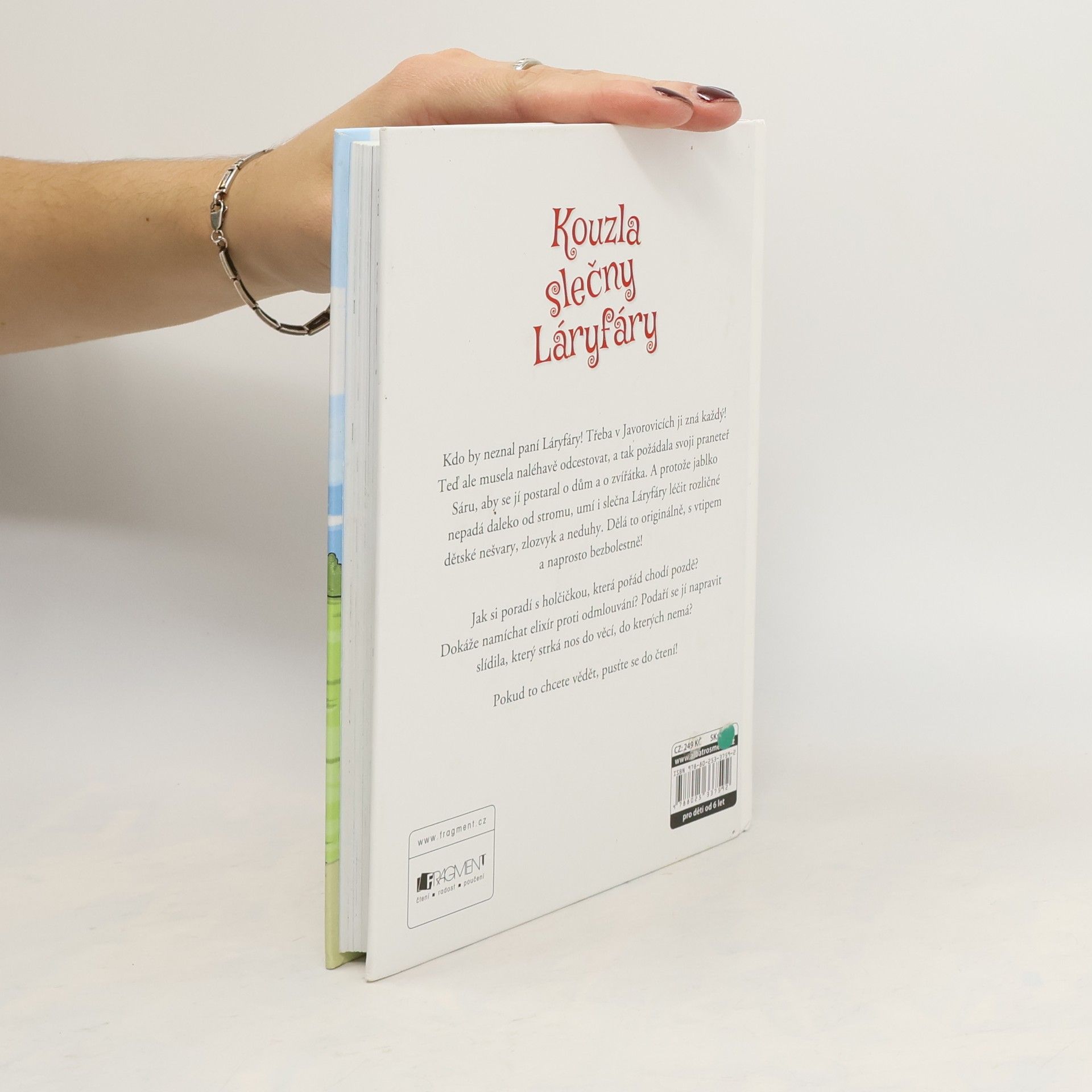 Kdo by neznal paní Láryfáry! Třeba v Javorovicích ji zná každý! Teď ale musela naléhavě odcestovat, a tak požádala svoji praneteř Sáru, aby se jí postarala o dům a o zvířátka. A protože jablko nepadá daleko od stromu, umí i slečna Láryfáry léčit rozličné dětské nešvary, zlozvyk a neduhy. Dělá to originálně, s vtipem a naprosto bezbolestně! Jak si poradí s holčičkou, která pořád chodí pozdě? Dokáže namíchat elixír proti odmlouvání? Podaří se jí napravit slídila, který strká nos do věcí, do kterých nemá? Pokud to chcete vědět, pusťte se do čtení!
