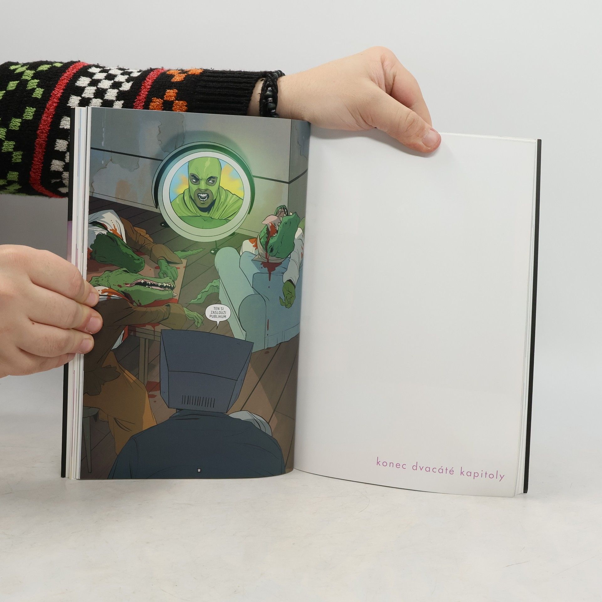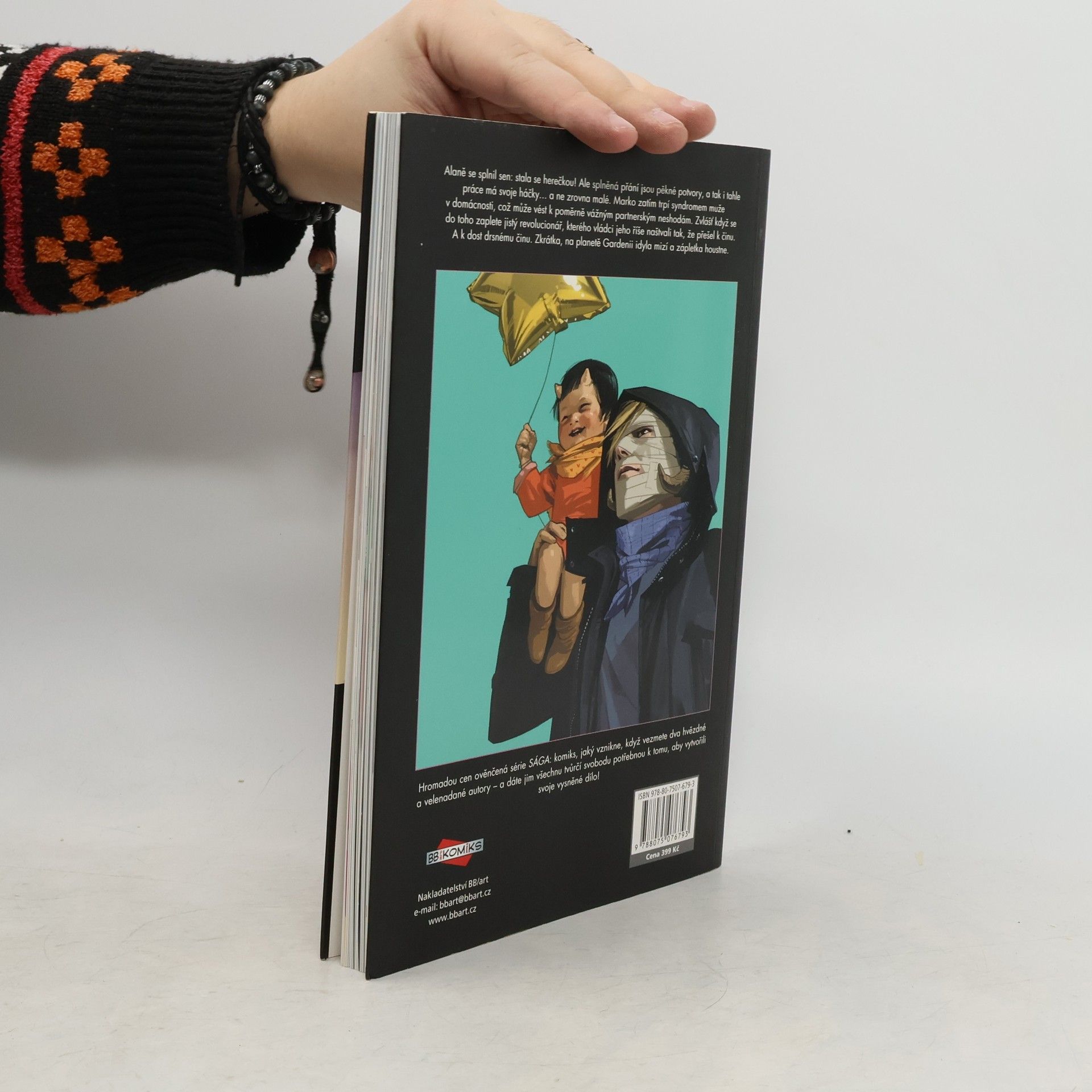 Alaně se splnil sen: stala se herečkou v poloilegálním virtuálním šou známém jako Otevřený okruh. Ale splněná přání jsou pěkné potvory, a tak i tahle práce má svoje háčky… a ne zrovna malé. Marko zatím trpí syndromem muže v domácnosti, což může vést k poměrně vážným partnerským neshodám. Zvlášť když se do toho zaplete robotický revolucionář, kterého aristokratičtí vládci Robotického království naštvali tak, že přešel k činu. A k dost drsnému činu. Zkrátka, na planetě Gardenii idyla mizí a zápletka houstne. Hromadou cen ověnčená série Sága: komiks, jaký vznikne, když vezmete dva hvězdné a velenadané autory – a dáte jim všechnu tvůrčí svobodu potřebnou k tomu, aby vytvořili svoje vysněné dílo! Spolu s davy fanoušků po celém světě sledujte osudy Marka a Alany, milenců a čerstvých rodičů, kteří přestali být vojáky v dlouhé válce, jež zachvátila skoro celý vesmír, a stali se dezertéry, které nemilosrdně pronásledují obě strany konfliktu. Protože pro mocipány by nebylo moc příjemné, kdyby se svět dozvěděl, že zástupci dvou nesmiřitelných ras se mohou nejen milovat, ale také plodit potomky…