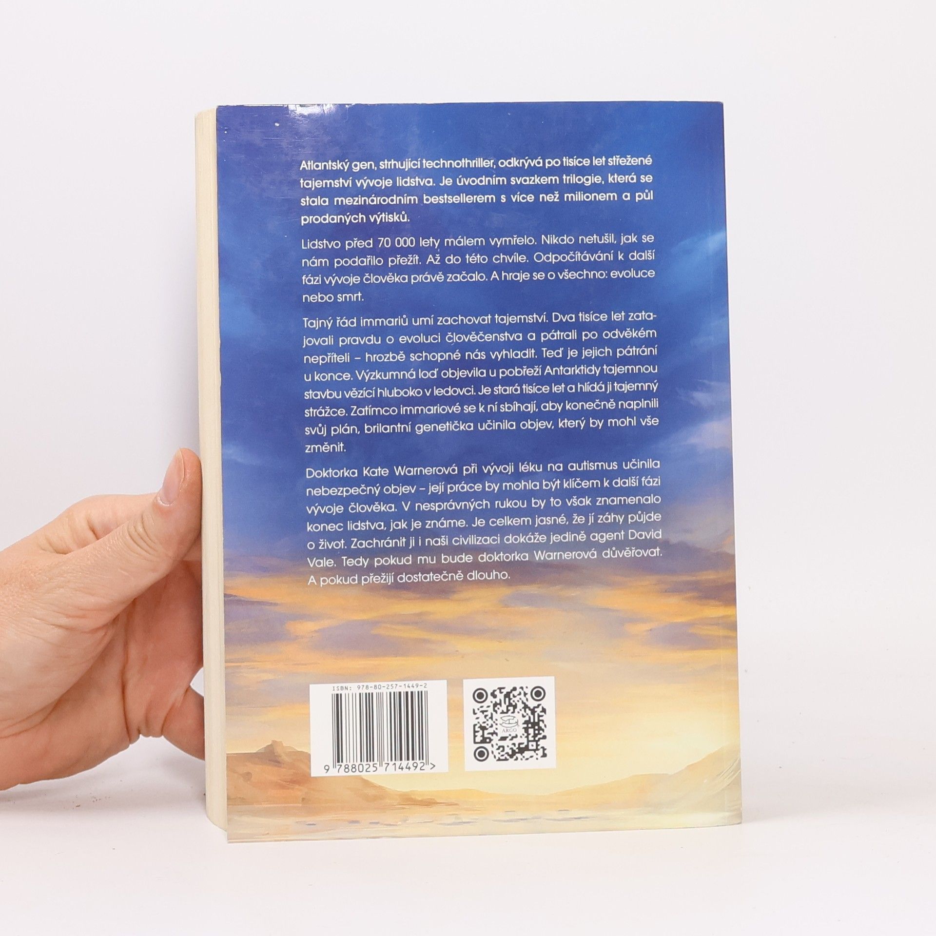 Lidstvo před 70 000 lety málem vymřelo, ale nyní se blíží další fáze jeho vývoje, kterou nemusí přežít. Immariové, tajemní strážci evoluční pravdy, pátrají po hrozbě, jež by mohla lidstvo vyhladit. Jejich pátrání vrcholí, když výzkumná loď objeví tajemnou strukturu ukrytou v antarktickém ledu, chráněnou něčím neznámým. Mezitím se doktorka Kate Warnerová, brilantní genetička, snaží uniknout své minulosti v Jakartě a učiní objev, který by mohl změnit vše – lék na autismus. Avšak její objev je mnohem nebezpečnější, než si uvědomuje, a může být klíčem k další fázi lidského vývoje. Agent David Vale, který se už deset let snaží zastavit immarie, se ocitá v časové tísni. Jeho informátor je mrtvý a jeho organizace byla infiltrována. Když obdrží šifrovanou zprávu o immarijském útoku, riskuje vše, aby zachránil Kate, která mu může pomoci odhalit pravdu o atlantském genu a původu lidstva. Společně se snaží rozplést celosvětové spiknutí, zatímco je immariové pronásledují a jsou odhodláni získat výsledky Katina výzkumu, i za cenu vyvraždění 99,9 % populace. David a Kate musí důvěřovat jeden druhému a přežít.