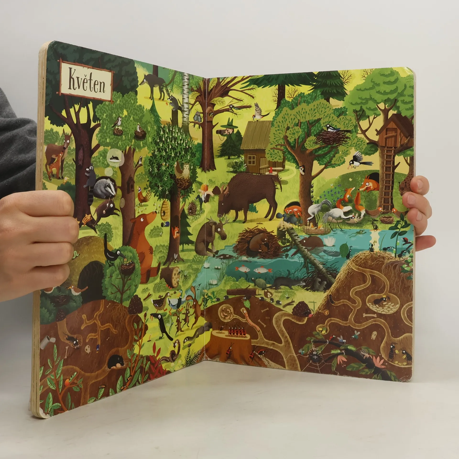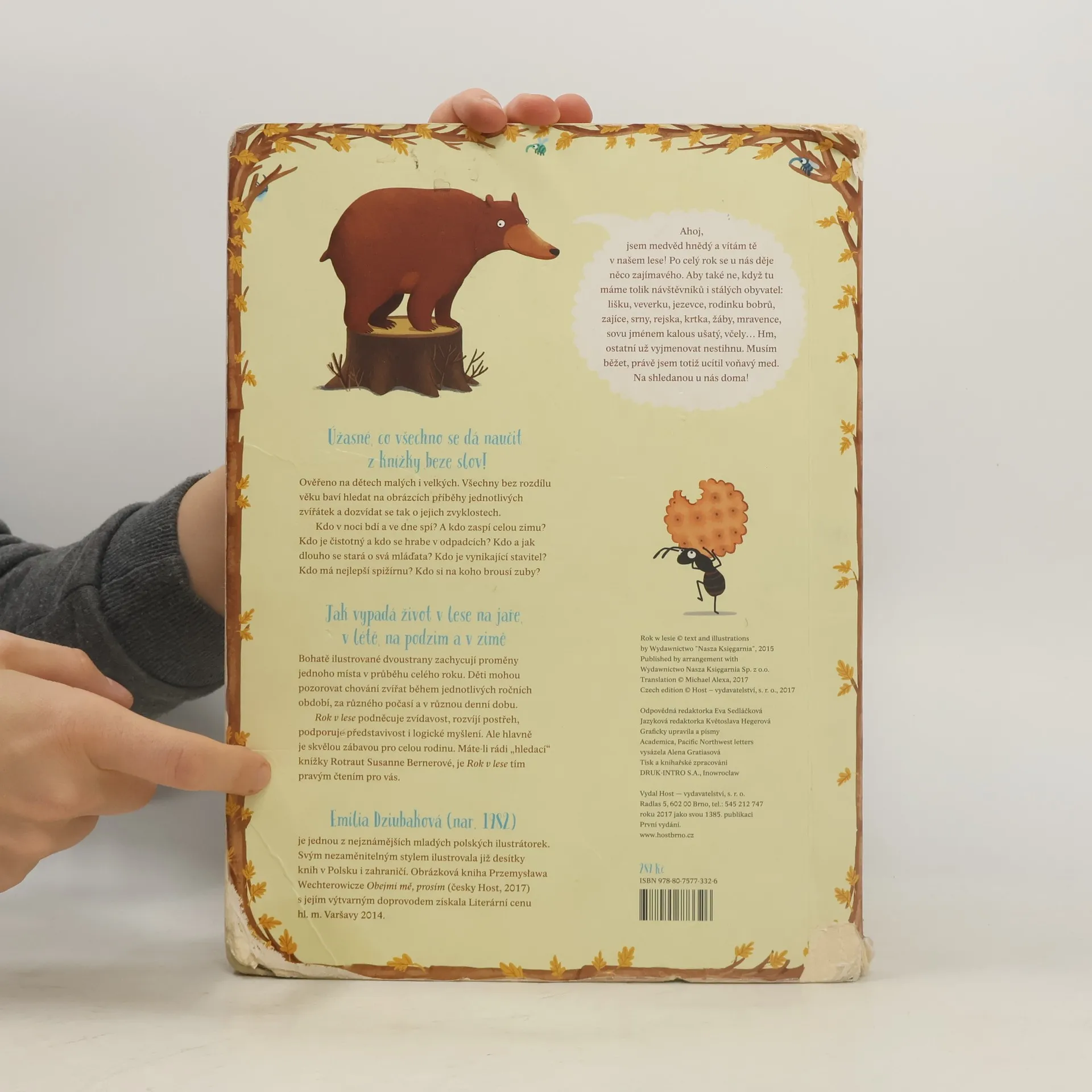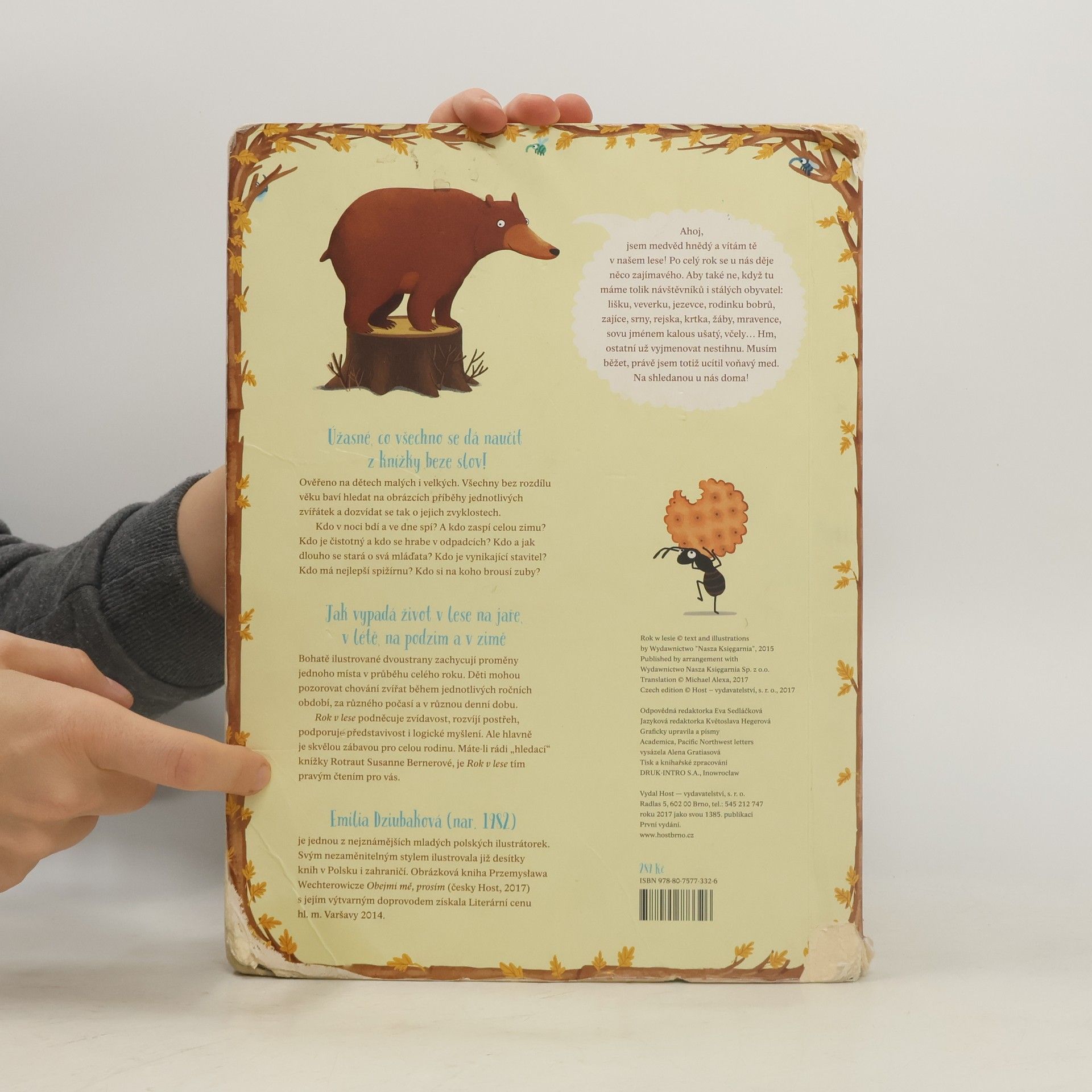 Jak vypadá život v lese na jaře, v létě, na podzim a v zimě? Bohatě ilustrované dvoustrany zachycují proměny jednoho místa v průběhu celého roku. Děti mohou pozorovat chování zvířat během jednotlivých ročních období, za různého počasí a v různou denní dobu. Rok v lese podněcuje zvídavost, rozvíjí postřeh, podporuje představivost i logické myšlení. Ale především je skvělou zábavou pro celou rodinu.