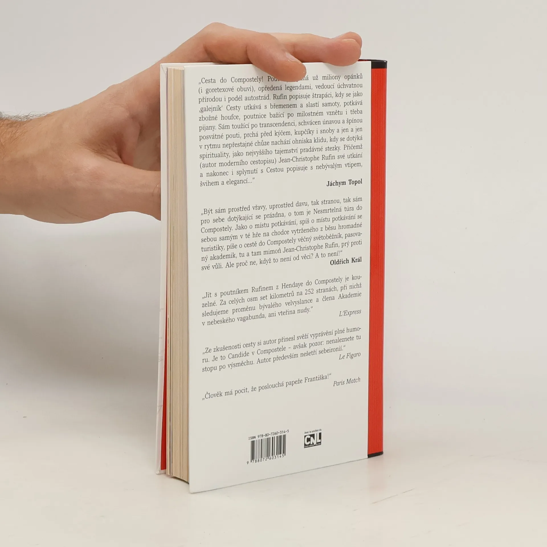 Cesta do Compostely! Pouť vyšlapaná už milióny opánků (i goretexové obuvi), opředená legendami, vedoucí úchvatnou přírodou i podél autostrád. Rufin popisuje štrapáci, kdy se jako „galejník“ Cesty utkává s břemenem a slastí samoty, potkává zbožné houfce, poutnice bažící po milostném vznětu i třeba pijany. Sám toužící po transcedenci, schvácen únavou a špínou posvátné pouti, prchá před kýčem, (kupčíky) i snoby a jen a jen v rytmu nepřestajné chůze nachází ohniska klidu, kdy se dotýká spirituality, jako nejvyššího tajemství pradávné stezky. Přičemž (autor moderního cestopisu) Jean Christophe Rufin své utkání a nakonec i splynutí s Cestou popisuje s nebývalým vtipem, švihem a elegancí …