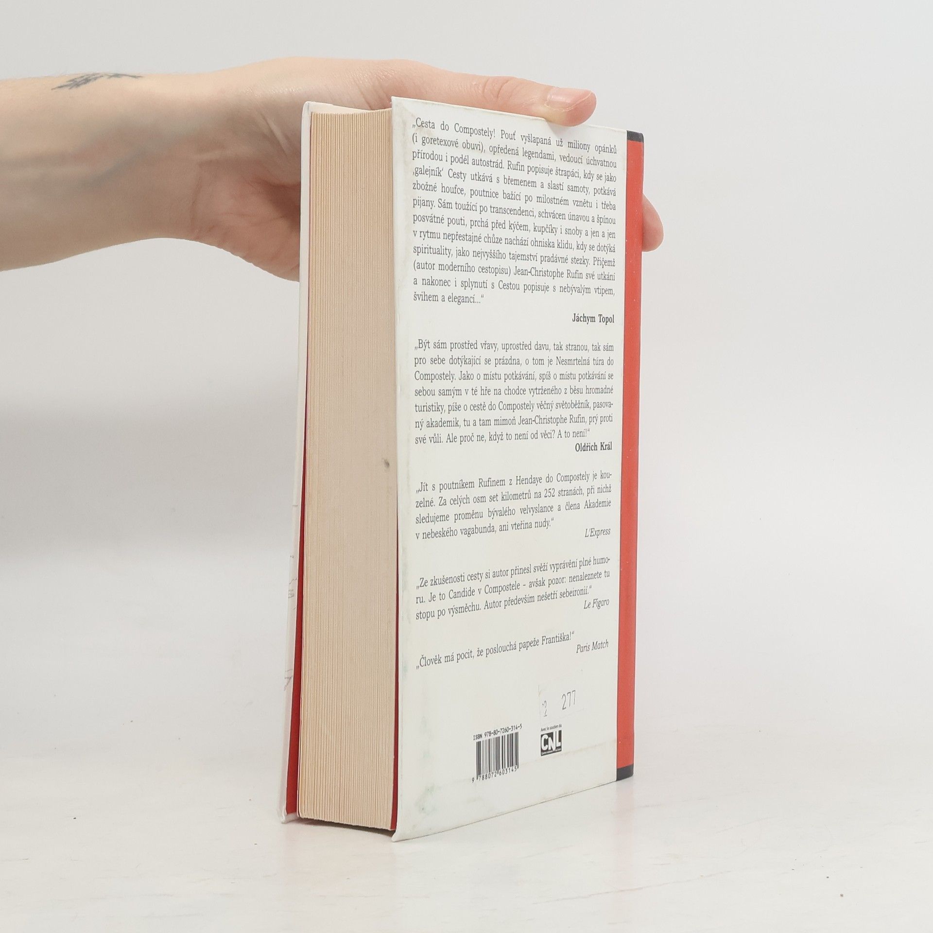 Cesta do Compostely! Pouť vyšlapaná už milióny opánků (i goretexové obuvi), opředená legendami, vedoucí úchvatnou přírodou i podél autostrád. Rufin popisuje štrapáci, kdy se jako „galejník“ Cesty utkává s břemenem a slastí samoty, potkává zbožné houfce, poutnice bažící po milostném vznětu i třeba pijany. Sám toužící po transcedenci, schvácen únavou a špínou posvátné pouti, prchá před kýčem, (kupčíky) i snoby a jen a jen v rytmu nepřestajné chůze nachází ohniska klidu, kdy se dotýká spirituality, jako nejvyššího tajemství pradávné stezky. Přičemž (autor moderního cestopisu) Jean Christophe Rufin své utkání a nakonec i splynutí s Cestou popisuje s nebývalým vtipem, švihem a elegancí …