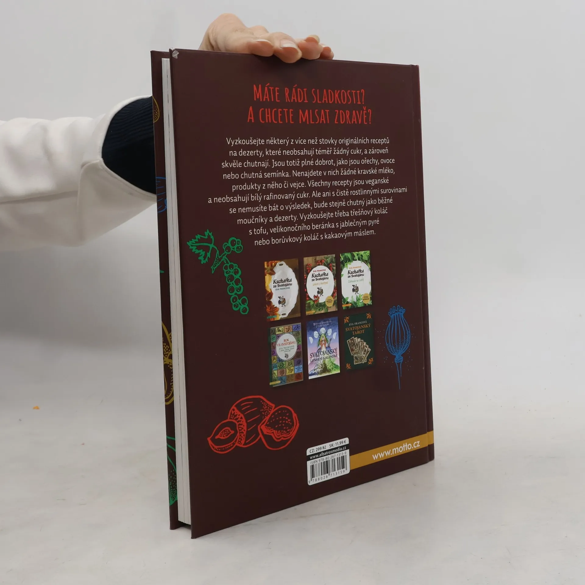 Máte rádi sladkosti? A chcete mlsat zdravě? Vyzkoušejte některý z více než stovky originálních receptů na dezerty, které neobsahují téměř žádný cukr, a zároveň skvěle chutnají. Jsou totiž plné dobrot, jako jsou ořechy, ovoce nebo chutná semínka. Nenajdete v nich však žádné kravské mléko, produkty z něho či vejce. Všechny recepty jsou veganské a neobsahují bílý rafinovaný cukr. Ale ani s čistě rostlinnými surovinami se nemusíte bát o výsledek, bude stejně chutný jako běžné moučníky a dezerty. Vyzkoušejte třeba třešňový koláč s tofu, velikonočního beránka s jablečným pyré nebo borůvkový koláč s kakaovým máslem.
