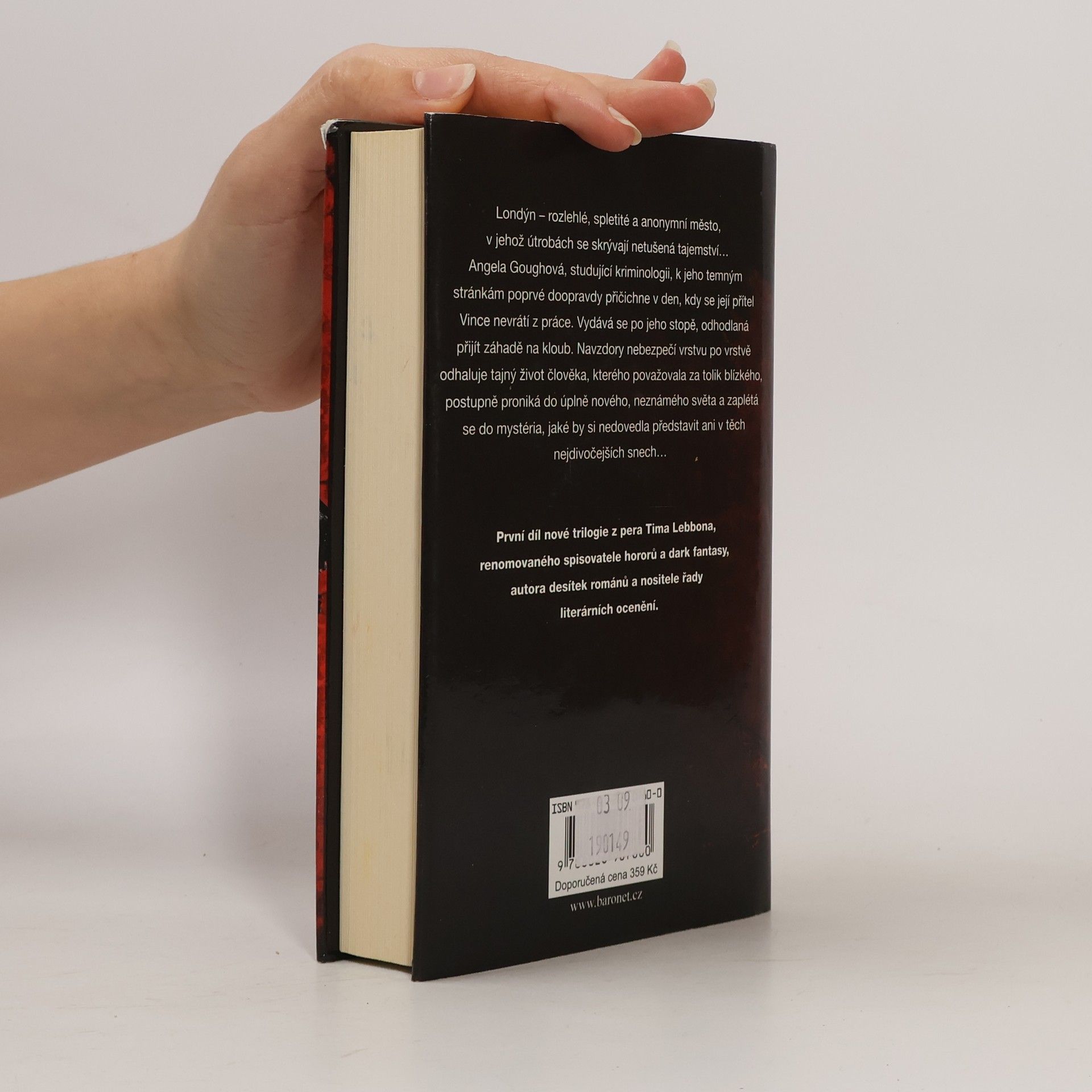 Londýn – rozlehlé, spletité a anonymní město, v jehož útrobách se skrývají netušená tajemství… Angela Goughová, studující kriminologii, k jeho temným stránkám poprvé doopravdy přičichne v den, kdy se její přítel Vincent nevrátí z práce. Vydává se po jeho stopě, odhodlaná přijít záhadě na kloub. Navzdory nebezpečí vrstvu po vrstvě odhaluje tajný život člověka, kterého považovala za tolik blízkého, postupně proniká do úplně nového, neznámého světa a zaplétá se do mystéria, jaké by si nedovedla představit ani v těch nedivočejších snech… První díl nové trilogie z pera Tima Lebbona, renomovaného spisovatele hororů a dark fantasy, autora desítek románů a nositele řady literárních ocenění.