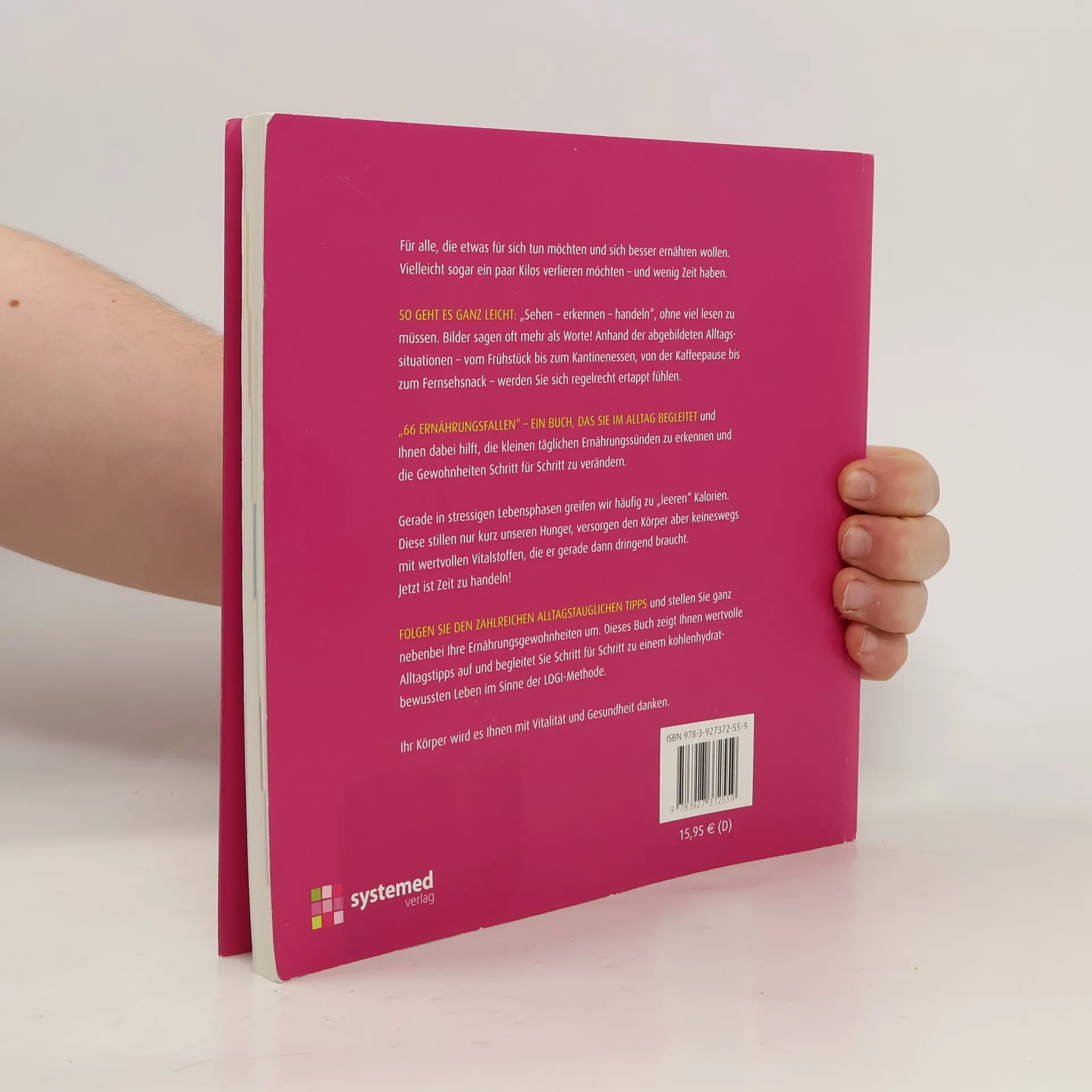 Der erste Low-Carb-Ratgeber seiner Art!Sehen, erkennen, handeln! In der Hektik des Alltags bleibt eine gesunde Ernährung oft auf der Strecke. Wir haben uns an zu viele Kohlenhydrate gewöhnt. Unsere Leistungsfähigkeit und Gesundheit leidet meist mit zunehmendem Körpergewicht.Wer für sich etwas ändern möchte, erhält in diesem Buch eine gezielte Hilfestellung. Bilder sagen mehr als Worte. Vom Frühstück zum Kantinenessen, von der Kaffeepause bis zum Fernsehsnack - anhand der abgebildeten Alltagssituationen fühlen Sie sich regelrecht ertappt. Das Buch veranschaulicht bildlich die gängigsten Ernährungsfallen. Sie werden sich in einzelnen Situationen wiederfinden und erkennen, dass es ganz einfach ist, Tag für Tag eine Kleinigkeit zu ändern.Hier steht Ihnen das Buch mit wertvollen Alltagstipps für die Umsetzung zur Seite und begleitet Sie auf Ihrem Weg zu einem kohlenhydratbewussten Leben im Sinne der LOGI-Methode.