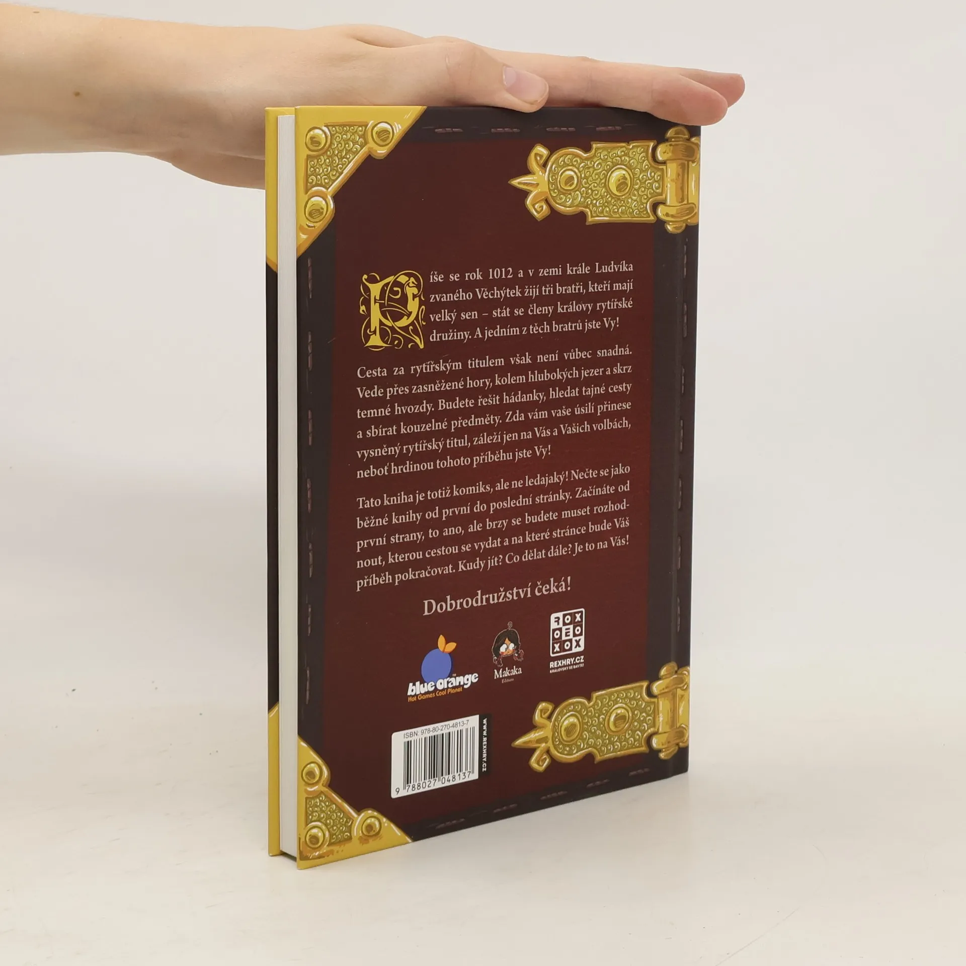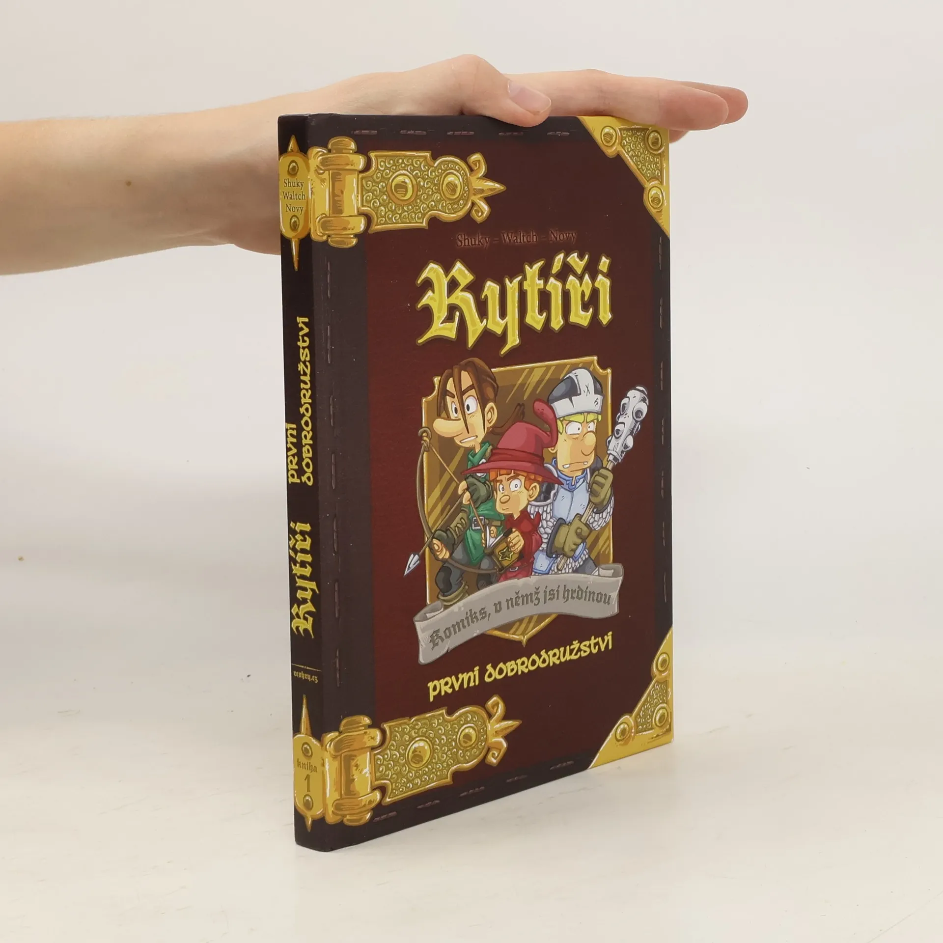 Rytíři: První dobrodružství je kniha z řady Komiks, v němž jsi hrdinou, v níž se originálně spojují dva oblíbené prvky: komiks s gamebookem, tedy s knihou, v níž vaše rozhodnutí určují další pokračování děje. V této komiksové knize se stanete jedním ze tří mladých sedláckých bratrů, kteří se rozhodli, že se stanou rytíři. Aby toho dosáhli, musí ale obstát v rytířské zkoušce. Budete s nimi prozkoumávat neznámé končiny, bojovat s lupiči, hledat poklady a získávat zbraně a magické předměty. Je jen na vás, kam se se svým hrdinou vydáte. Jeho osud je zcela ve vašich rukou. Svou obtížností, příběhem i zpracováním je hra obzvláště vhodná pro mladší hráče od desíti let.