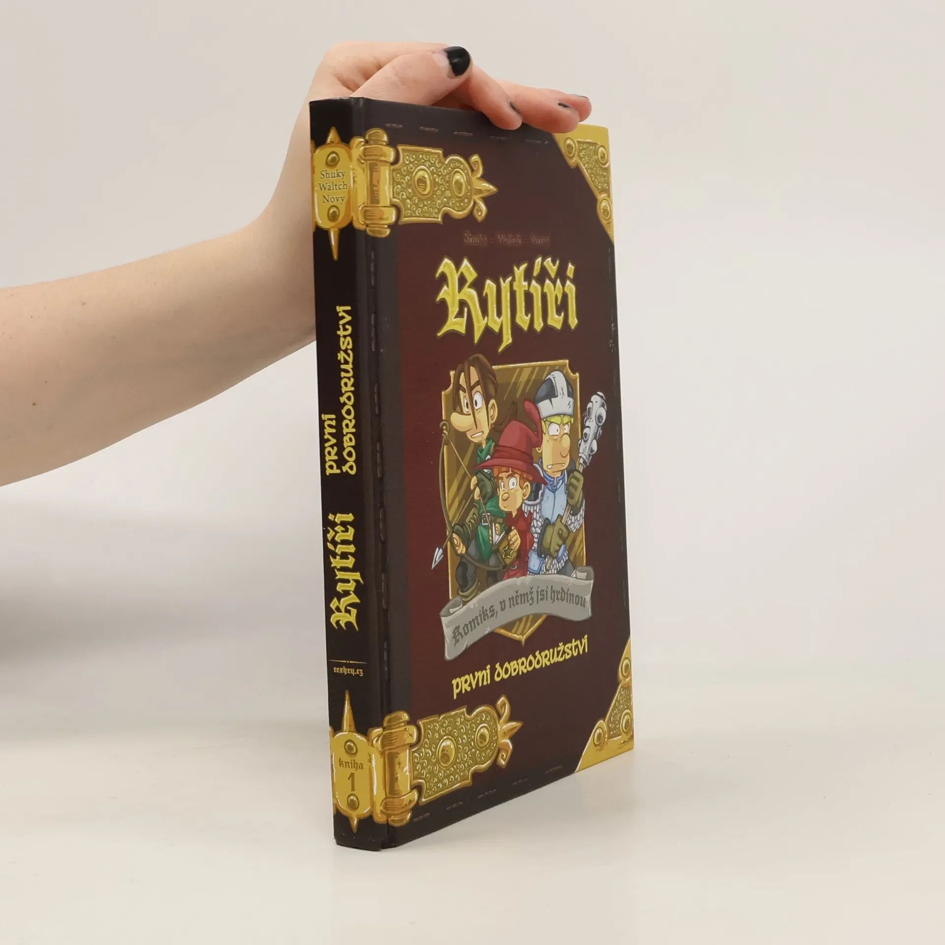 Rytíři: První dobrodružství je kniha z řady Komiks, v němž jsi hrdinou, v níž se originálně spojují dva oblíbené prvky: komiks s gamebookem, tedy s knihou, v níž vaše rozhodnutí určují další pokračování děje. V této komiksové knize se stanete jedním ze tří mladých sedláckých bratrů, kteří se rozhodli, že se stanou rytíři. Aby toho dosáhli, musí ale obstát v rytířské zkoušce. Budete s nimi prozkoumávat neznámé končiny, bojovat s lupiči, hledat poklady a získávat zbraně a magické předměty. Je jen na vás, kam se se svým hrdinou vydáte. Jeho osud je zcela ve vašich rukou. Svou obtížností, příběhem i zpracováním je hra obzvláště vhodná pro mladší hráče od desíti let.