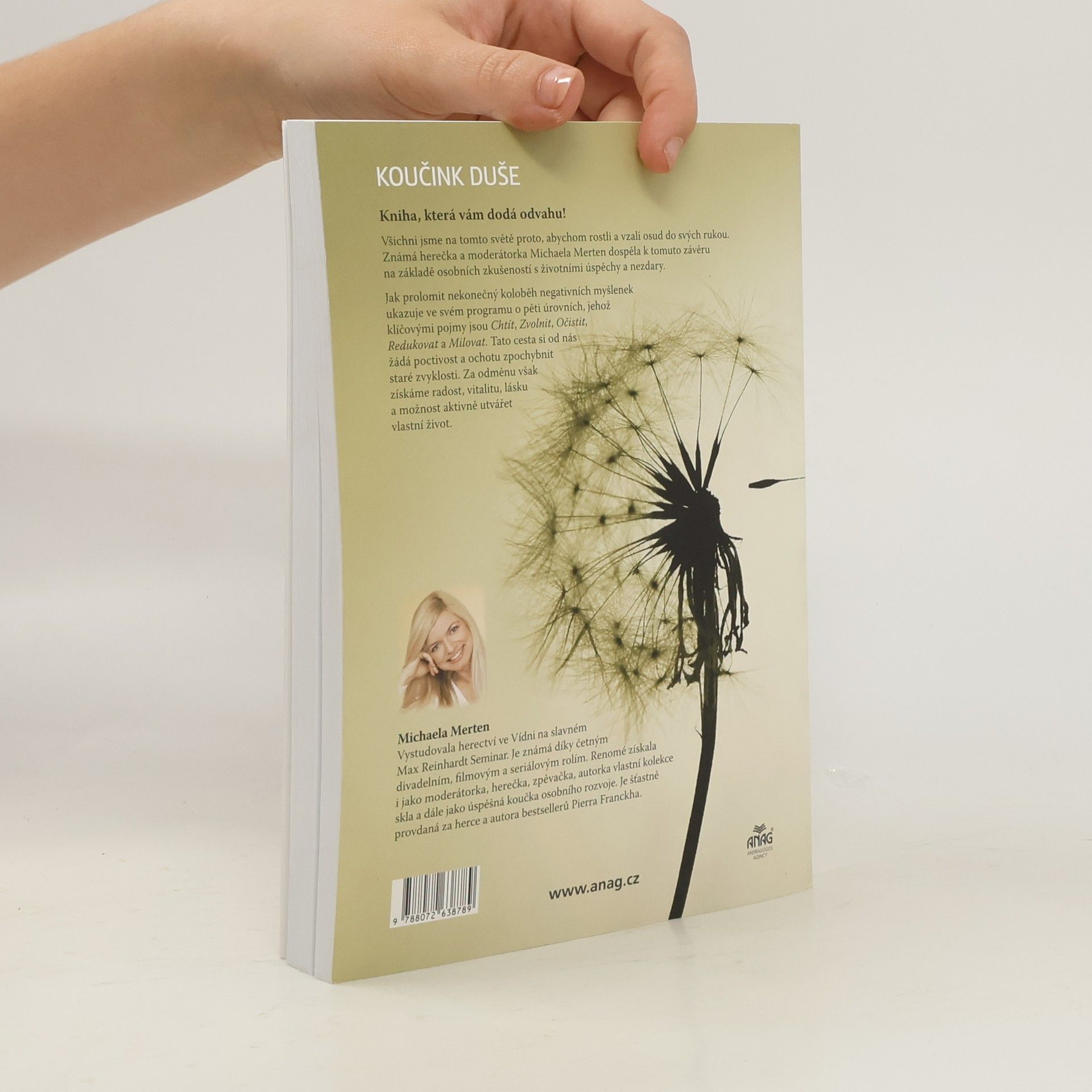 Cesta ke klidu a radosti ze života Koučink duše je kniha, která vám dodá odvahu! Všichni jsme na tomto světě proto, abychom rostli a vzali osud do svých rukou. Známá herečka a moderátorka Michaela Merten dospěla k tomuto závěru na základě osobních zkušeností s životními úspěchy a nezdary. Změňte svůj život z negativního na pozitivní jednou provždy Jak prolomit nekonečný koloběh negativních myšlenek ukazuje Michaela Merten ve svém programu o pěti úrovních, jehož klíčovými pojmy jsou Chtít, Zvolnit, Očistit, Redukovat a Milovat. Tato cesta si od nás žádá poctivost a ochotu zpochybnit staré zvyklosti. Za odměnu však získáme radost, vitalitu, lásku a možnost aktivně utvářet vlastní život.