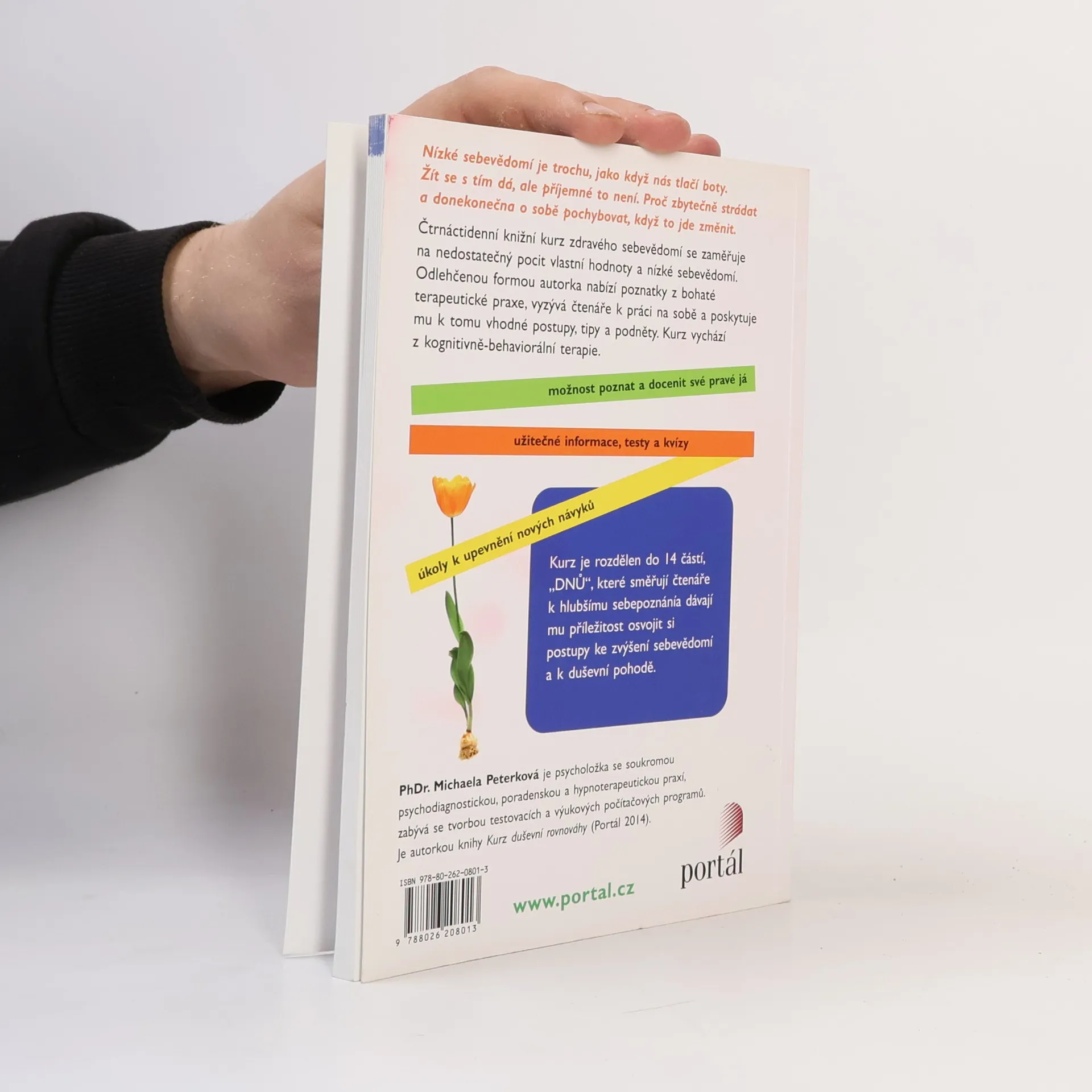 Nízké sebevědomí je trochu, jako když nás tlačí boty. Žít se s tím dá, ale příjemné to není. Proč zbytečně strádat a do nekonečna o sobě pochybovat, když to jde změnit. Čtrnáctidenní knižní kurz zdravého sebevědomí je pokračováním série tréninků duševního zdraví a zaměřuje se na nedostatečný pocit vlastní hodnoty a nízké sebevědomí. Odlehčenou formou nabízí autorka poznatky z bohaté terapeutické praxe, vyzývá čtenáře k práci na sobě a poskytuje mu k tomu vhodné postupy, tipy a podněty. Kurz vychází z kognitivně-behaviorální terapie. Kurz je rozdělen do 14 částí, „DNŮ“, které směřují čtenáře k hlubšímu sebepoznání a dávají mu příležitost osvojit si postupy ke zvýšení sebevědomí a duševní pohody.