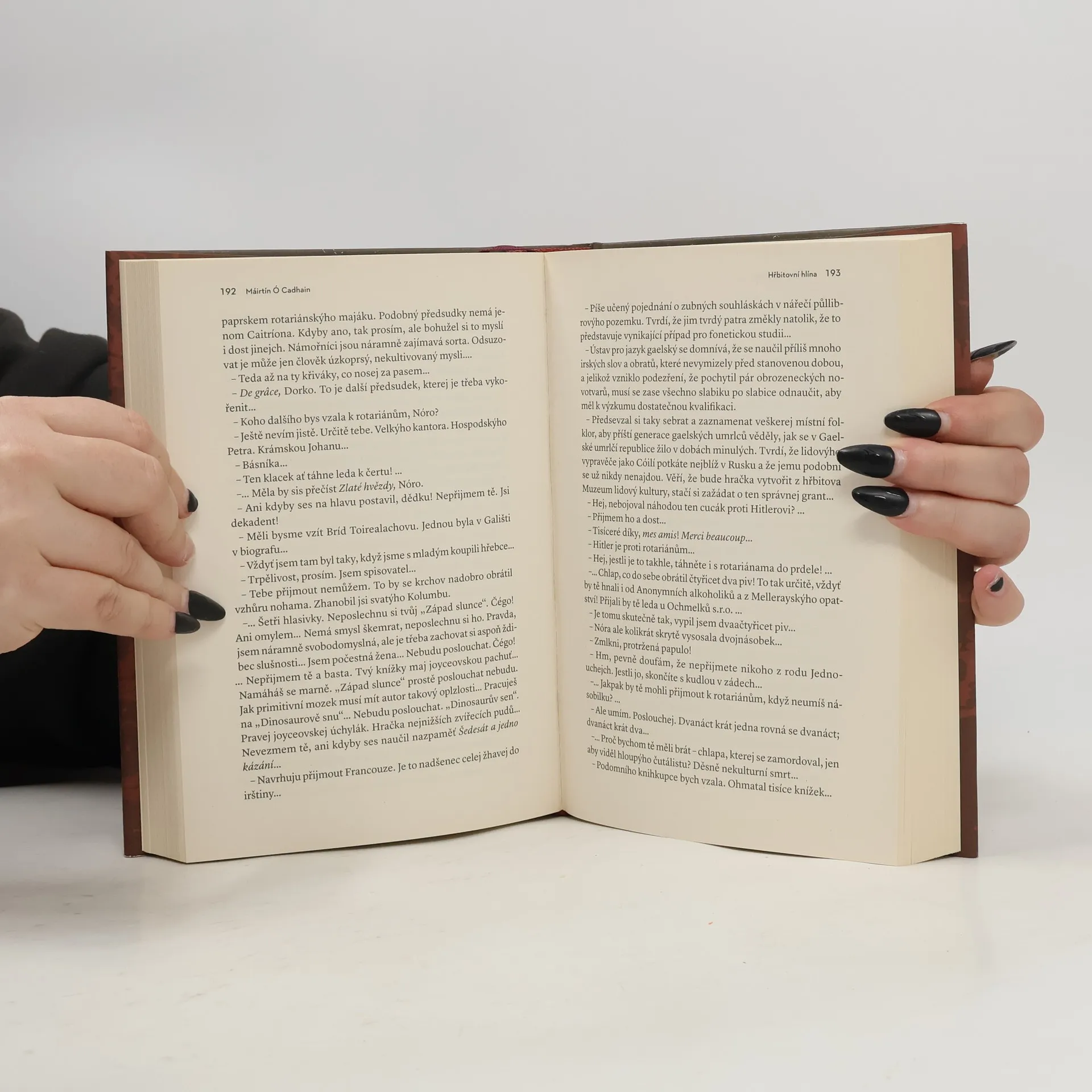Kultovní klasika irské literatury Hřbitovní hlína vyšla poprvé v roce 1949 a od té doby se dočkala filmového i divadelního zpracování, nicméně přeložena byla jen do mála jazyků. Důvodem není jen to, že překladatelů z irštiny bývá všude, krom britských ostrovů, pomálu, ale i obrovská náročnost textů, které jiskří slovními hříčkami, využívá úzce vymezeného connemarského dialektu atd. Teprve loni vyšel poprvé v anglickém překladu, zato hned letos v dalším. Zkrátka je to kniha jak zábavná a náročná, tak i fascinující. Všechno začíná ve chvíli, kdy hlavní hrdinka Caitríona zemře a pohřbí ji do hřbitovní hlíny. Ale je to librový, nebo pěťákový pozemek? Dali jí ten správný rubáš? A křížek? Nešetřili na ní? Nesnažili se ji ošidit, tak jako, Pánbůh je zatrať, když byla ještě naživu? No, každopádně to se všemi svým „spolubydlícími“ (a že jich je) bude moct důkladně probrat. Mají na to celou věčnost.