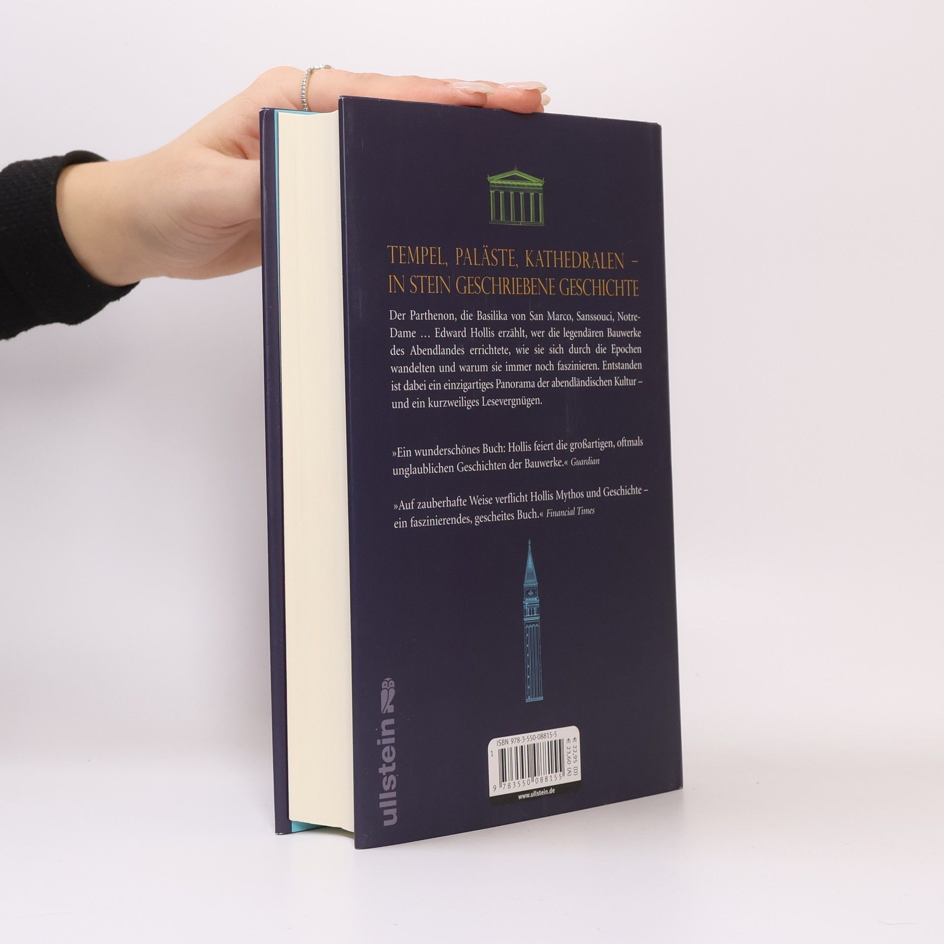 Edward Hollis erzählt, wer die legendären Bauwerke des Abendlandes errichtete, wie sie sich durch die Epochen wandelten und warum sie immer noch faszinieren. Er folgt den Spuren des Zeitgeistes durch die Jahrhunderte, von der Antike über das Mittelalter bis in die Gegenwart. Der Parthenon, geschaffen als Tempel der Athene, wurde unzählige Male erobert, zerstört und überformt und steht doch bis heute für ein Ideal von Schönheit und Weisheit. Die Berliner Mauer ist Endpunkt der Reise. Sie ist als Bauwerk, das eine Stadt und ganz Europa teilte, heute nicht mehr zu erkennen. Dennoch bleibt sie als Symbol dieser Teilung bestehen. Edward Hollis hat ein Panorama der abendländischen Kultur verfasst, das Geschichte greifbar und lebendig macht.