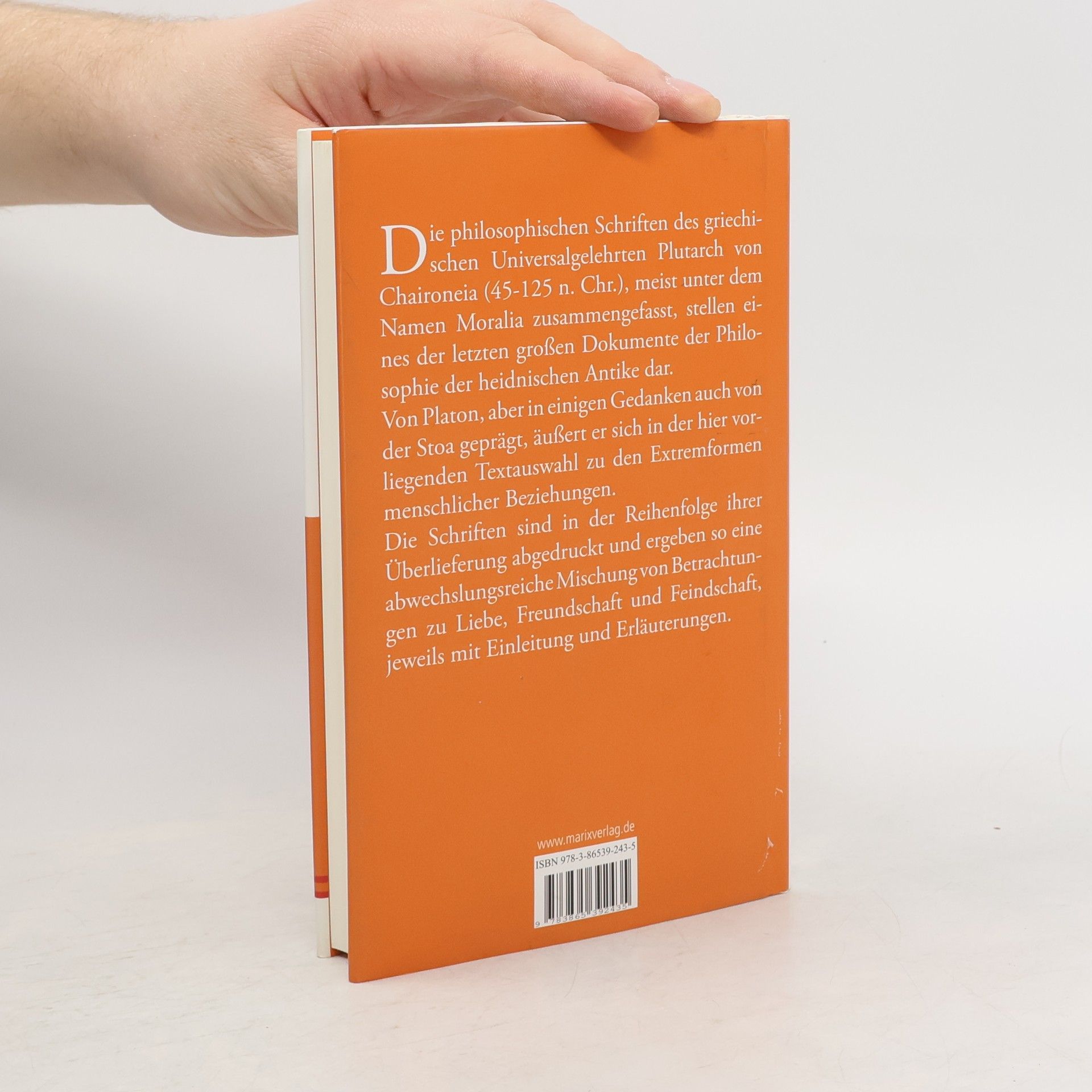 Die philosophischen Schriften des griechischen Universalgelehrten Plutarch von Chaeronea (45-125 n. Chr.), meist unter dem Namen Moralia zusammengefasst, stellen eines der letzten großen Dokumente der Philosophie der heidnischen Antike dar. Von Platon, aber in einigen Gedanken auch von der Stoa geprägt, äußert er sich in der hier vorliegenden Textauswahl zu den Extremformen menschlicher Beziehungen. Die Schriften sind in der Reihenfolge ihrer Überlieferung abgedruckt und ergeben so eine abwechslungsreiche Mischung von Betrachtungen zu Liebe, Freundschaft und Feindschaft, jeweils mit Einleitung und Erläuterungen.