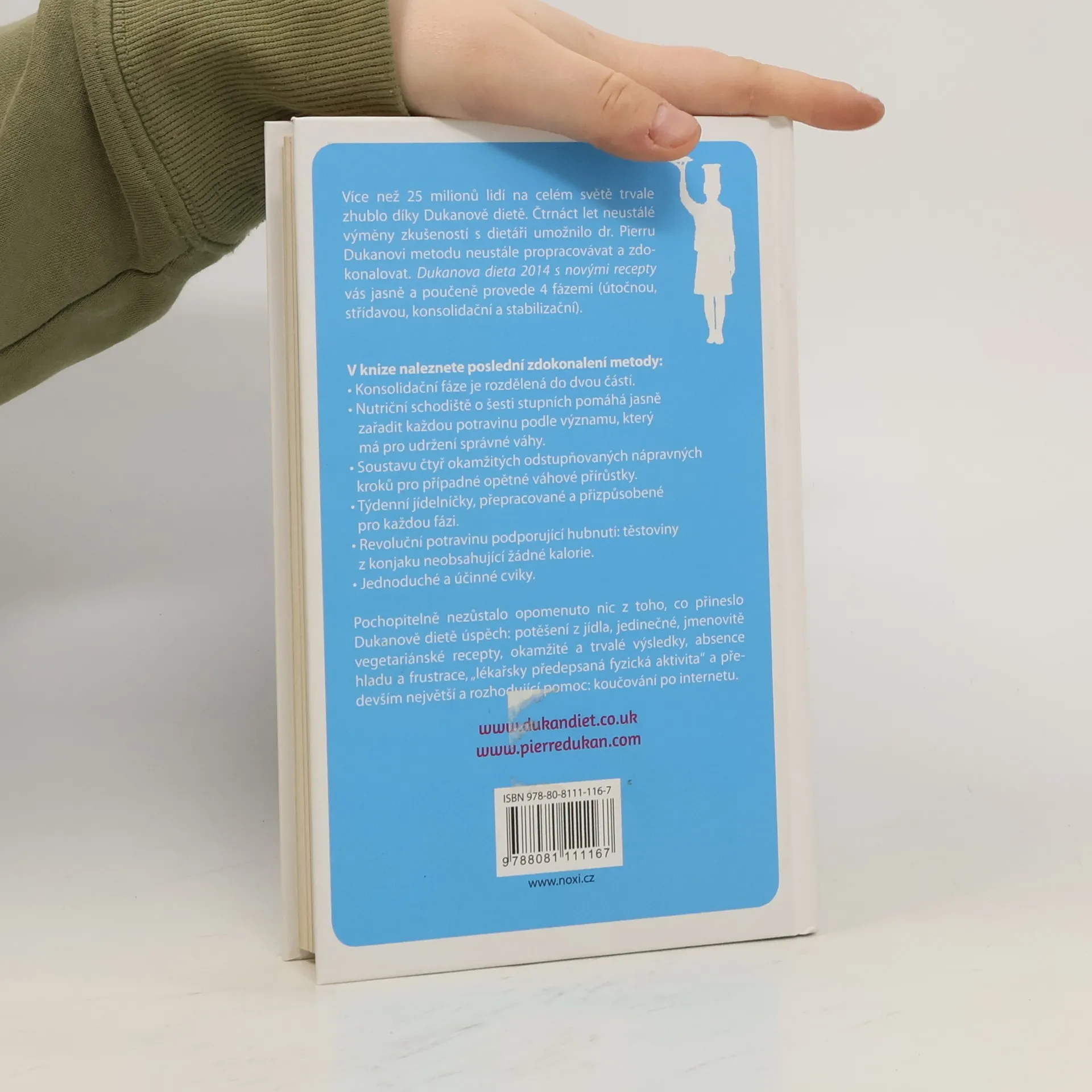 Více než 25 milionů osob na celém světě trvale zhublo díky Dukanově dietě. Čtrnáct let neustálé výměny zkušeností s dietáři umožnilo dr. Pierru Dukanovi metodu neustále propracovávat a zdokonalovat. Dukanova dieta s novými recepty i pro vegetariány vás jasně a poučeně provede 4 fázemi (útočnou, střídavou, konsolidační a stabilizační). V knize nalezete poslední zdokonalení metody: • Konsolidační fáze je rozdělená do dvou částí. • Nutriční schodiště o šesti stupních pomáhá jasně zařadit každou potravinu podle významu, který má pro udržení správné váhy. • Soustavu čtyř okamžitých odstupňovaných nápravných kroků pro případné opětné váhové přírůstky. • Týdenní jídelníčky, přepracované a přizpůsobené pro každou fázi. • Revoluční potravinu podporující hubnutí: těstoviny z konjaku neobsahující žádné kalorie. • Jednoduché a účinné cviky s ilustračními fotografiemi. Pochopitelně nezůstalo opomenuto nic z toho, co přineslo Dukanově dietě úspěch: potěšení z jídla, jedinečné, jmenovitě vegetariánské recepty, okamžité a trvalé výsledky, absence hladu a frustrace, „lékařsky předepsaná fyzická aktivita“, smlouva o krátkodobé, střednědobé a dlouhodobé stabilizaci – a především největší a rozhodující pomoc: koučování po internetu.
