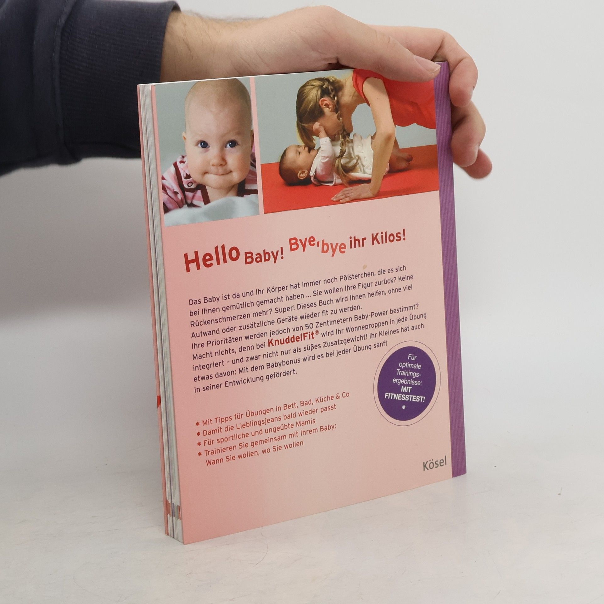 Egal ob sportlich oder ungeübt - dieses Buch hilft jungen Müttern, die gemeinsame Zeit mit ihrem Wonneproppen zu nutzen, um nach Schwangerschaft und Geburt wieder fit zu werden. Zu Hause oder unterwegs, im Stehen, Sitzen oder Liegen: KnuddelFit-Übungen stärken Beckenboden, Rücken, Beine, Bauch und Po, sind spielerisch, unkompliziert und entspannend. Sie lassen außerdem die Pfunde purzeln, die Lieblingsjeans passt wieder, und auch das Baby wird durch die Bewegung optimal gefördert. KnuddelFit von Anfang an! Ausstattung: ca. 300 Fotos