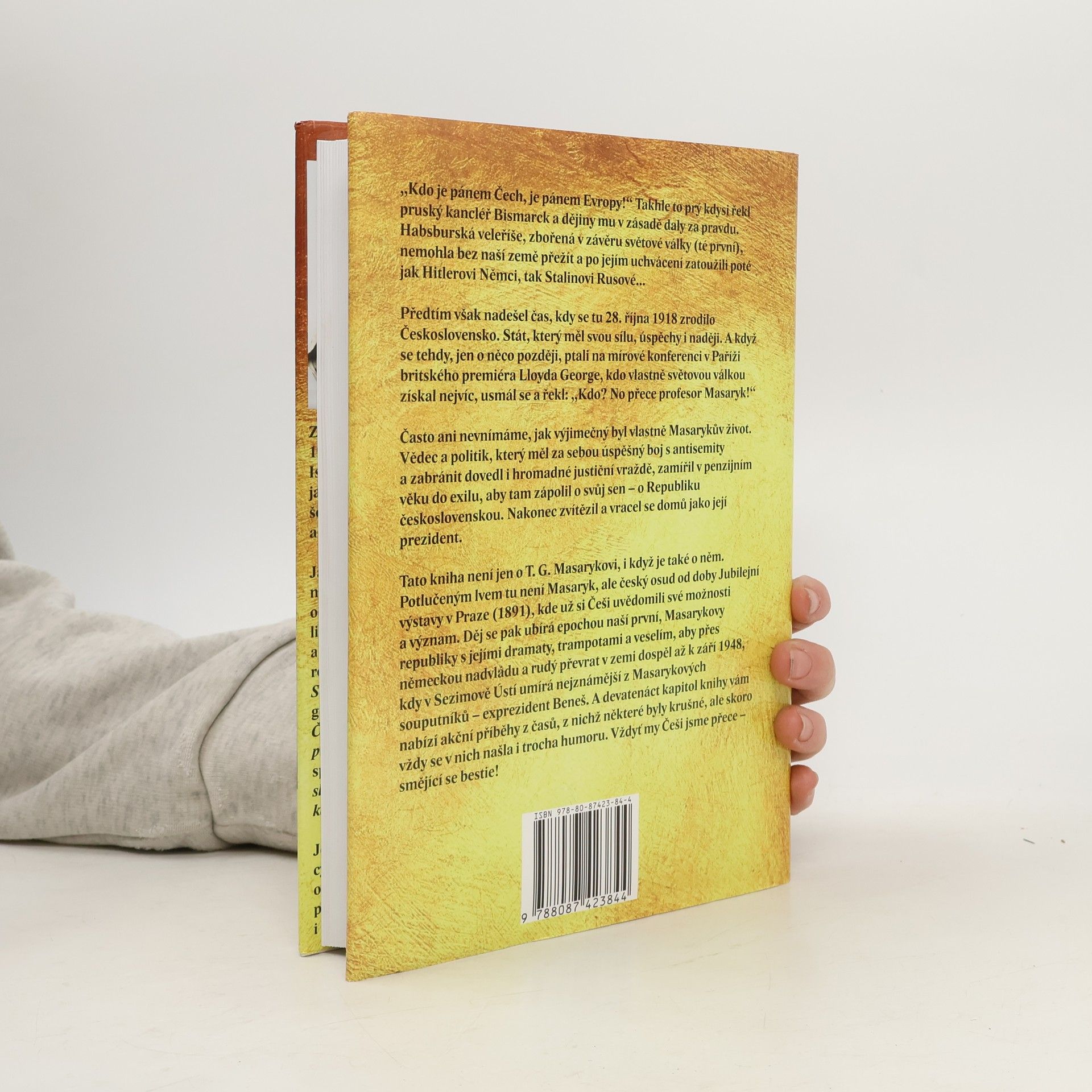 „Kdo je pánem Čech, je pánem Evropy!“ Tato slova pruského kancléře Bismarcka se ukázala jako pravdivá, neboť Habsburská říše nemohla bez Čech přežít. Po jejím rozpadnutí toužili po zemi jak Hitlerovi Němci, tak Stalinovi Rusové. Avšak 28. října 1918 vzniklo Československo, stát s vlastní silou a nadějí. Když se na mírové konferenci v Paříži ptali britského premiéra Lloyda George, kdo nejvíce získal z války, odpověděl: „No přece profesor Masaryk!“ Masarykův život byl výjimečný; jako vědec a politik se postavil proti antisemitismu a zabránil hromadným justičním vraždám. V penzi se vydal do exilu, aby usiloval o svůj sen – Československou republiku, a nakonec se vrátil jako její prezident. Kniha se nezaměřuje pouze na T. G. Masaryka, ale na český osud od Jubilejní výstavy v Praze v roce 1891, kdy Češi začali chápat své možnosti. Děj sleduje období první republiky, její dramata a radosti, až po německou nadvládu a rudý převrat, končící smrtí exprezidenta Beneše v roce 1948. Devatenáct kapitol nabízí akční příběhy z těchto obtížných časů, často proložené humorem, neboť Češi jsou přece „smějící se bestie!“
