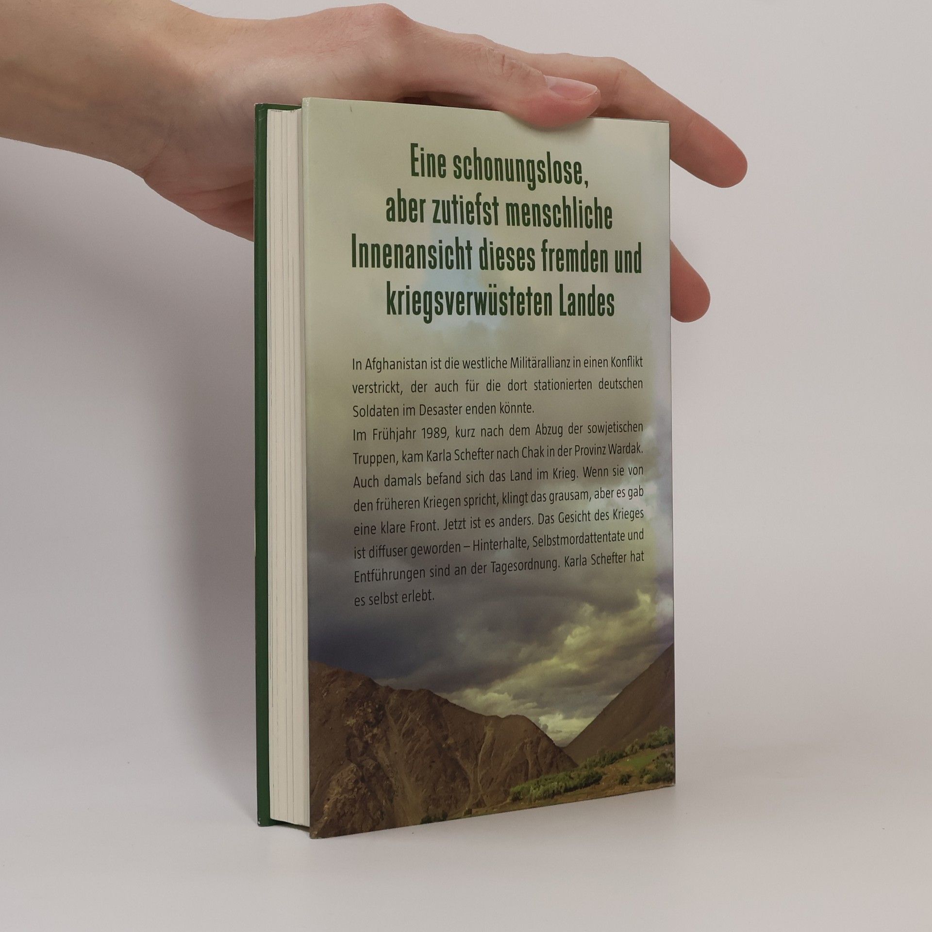Eine schonungslose, aber zutiefst menschliche Innenansicht dieses fremden und kriegsverwüsteten Landes In Afghanistan ist die westliche Militärallianz in einen Konflikt verstrickt, der auch für die dort stationierten deutschen Soldaten im Desaster enden könnte. Im Frühjahr 1989, kurz nach dem Abzug der sowjetischen Truppen, kam Karla Schefter nach Chak in der Provinz Wardak. Auch damals befand sich das Land im Krieg. Wenn sie von den früheren Kriegen spricht, klingt das grausam, aber es gab eine klare Front. Jetzt ist es anders. Das Gesicht des Krieges ist diffuser geworden – Hinterhalte, Selbstmordattentate und Entführungen sind an der Tagesordnung. Karla Schefter hat es selbst erlebt.