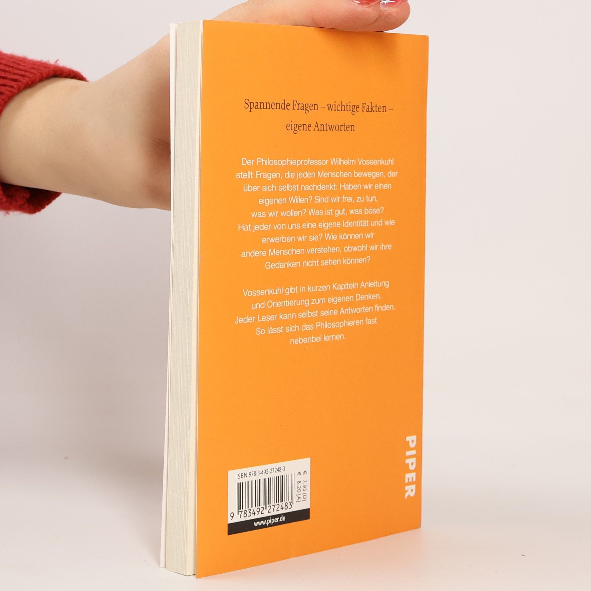Schon immer haben die Menschen über sich selber nachgedacht. Der Philosophieprofessor Wilhelm Vossenkuhl hat hier die wichtigsten und interessantesten Fragen zusammengestellt: Haben wir einen eigenen Willen? Sind wir frei, zu tun, was wir wollen? Hat jeder von uns eine eigene Identität, und wie erwerben wir sie? Wie können wir andere Menschen verstehen, obwohl wir ihre Gedanken nicht sehen können? Vossenkuhl gibt in kurzen Kapiteln Anleitung und Orientierung zum eigenen Denken. Jeder Leser kann selbst seine Antworten finden. So lässt sich das Philosophieren fast nebenbei lernen.