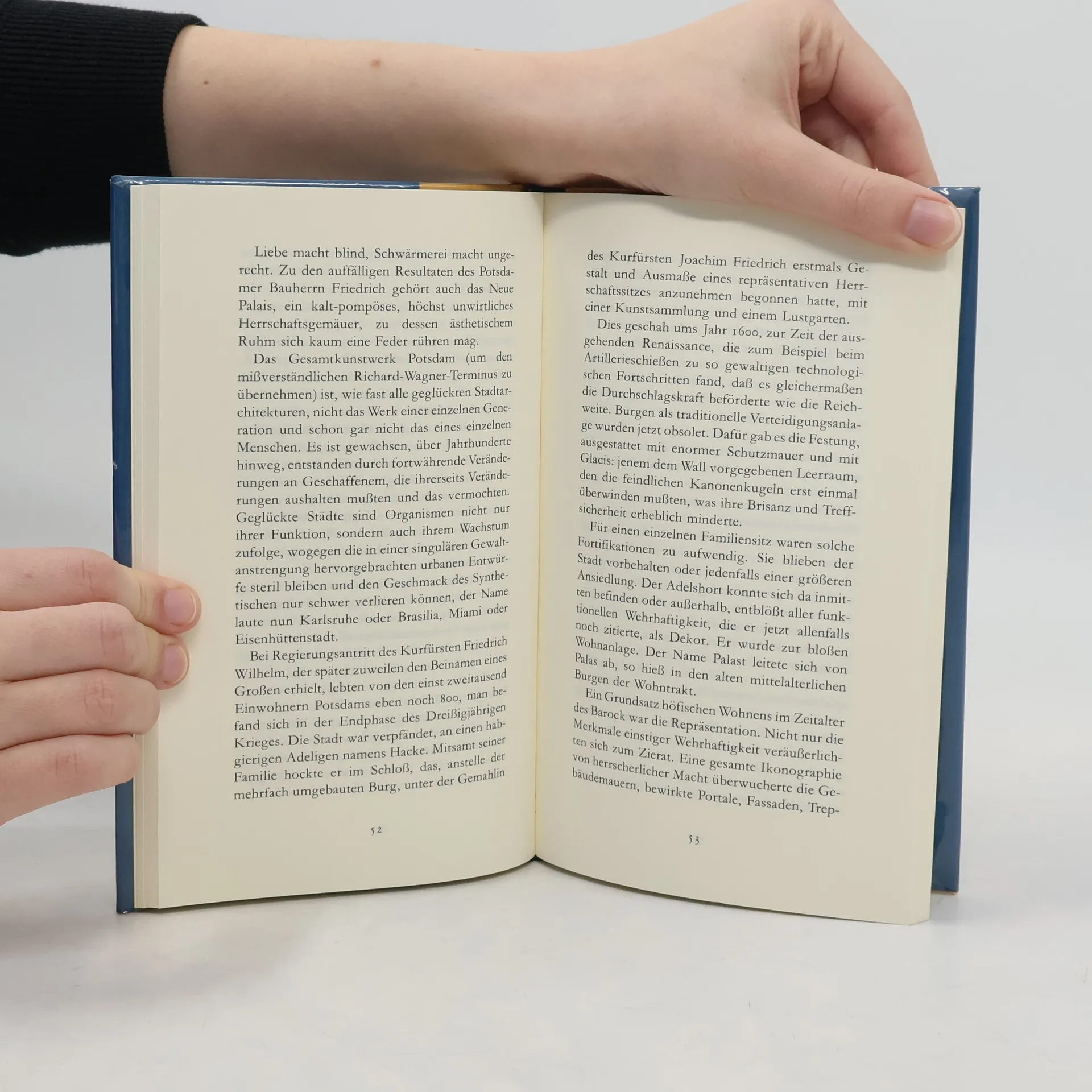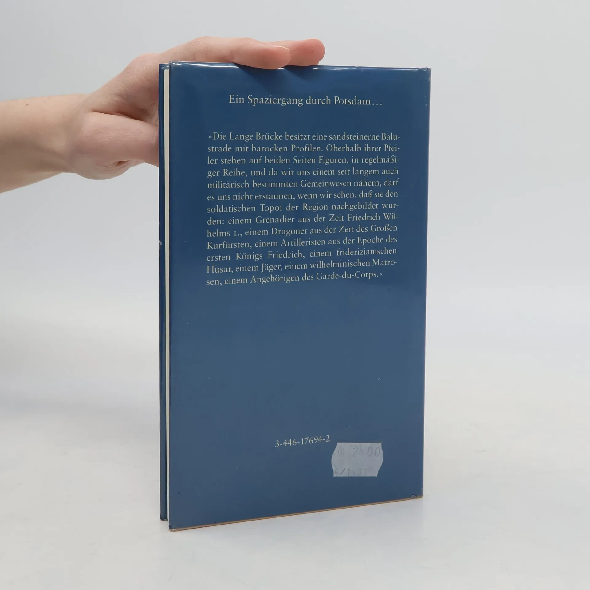Rolf Schneider macht einen ausgedehnten Spaziergang durch das heutige und das historische Potsdam. Trotz des großen Berlins an seiner Seite konnte die kleine Stadt bisher ihre Eigenheiten behaupten. Durch die Preußenkönige wurde es zum Zentrum von Politik und Kultur. Die Kulisse hierfür wurde von bedeutenden Architekten gestaltet. Dem Potsdam der Gegenwart sagt Schneider jedoch voraus, daß es von Berlin verschlungen wird.
