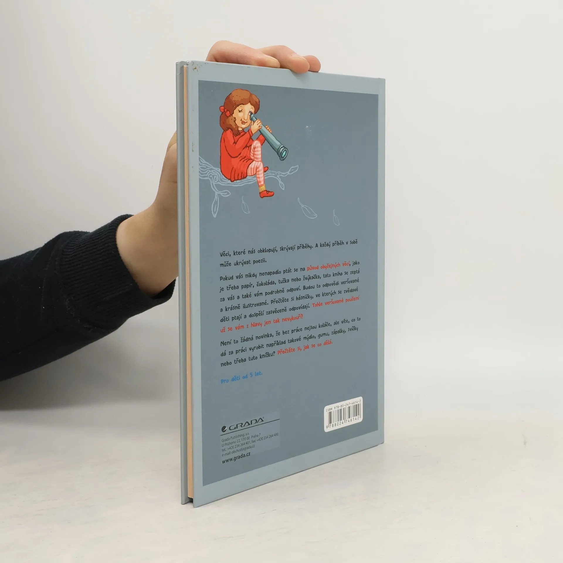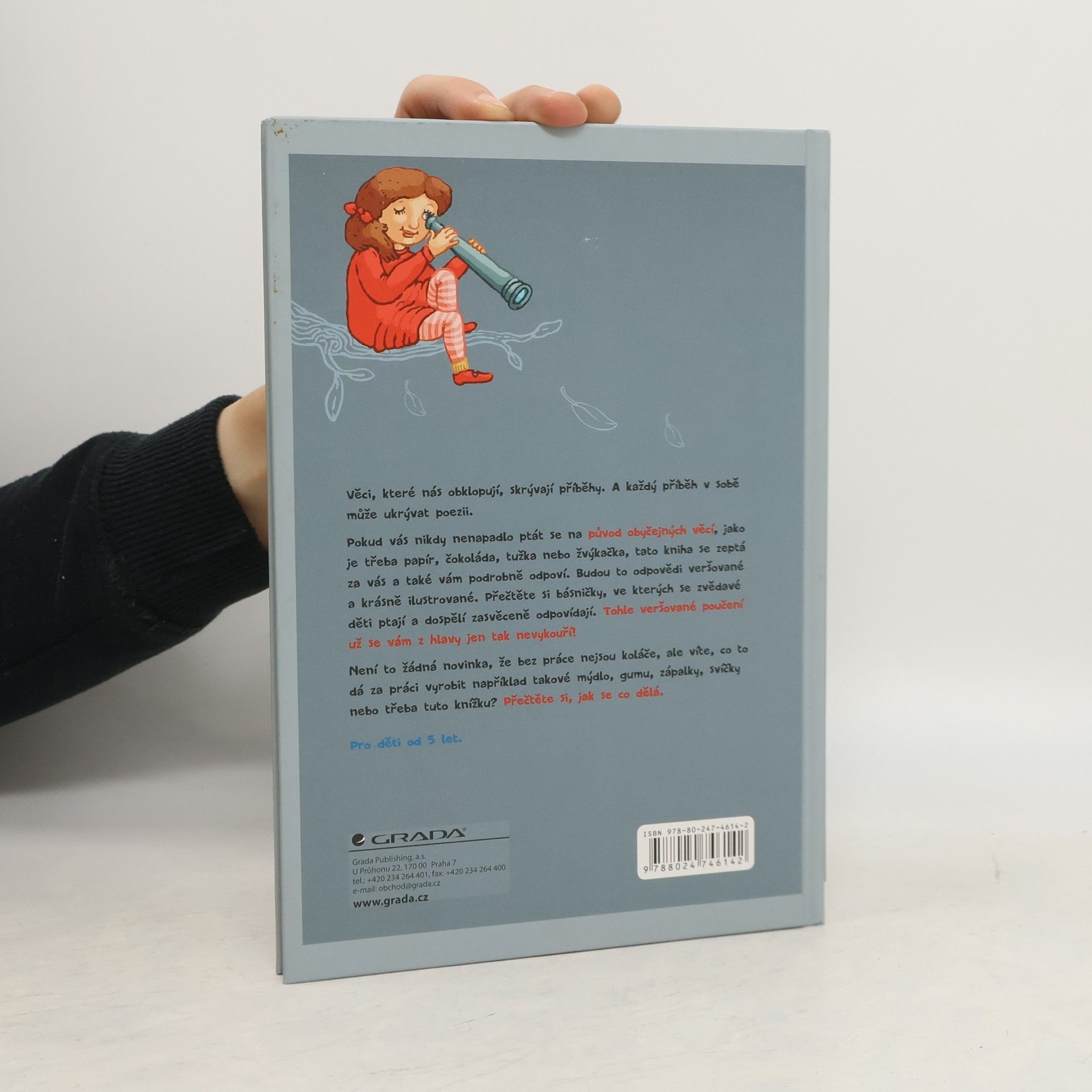 Pokud vás nikdy nenapadlo ptát se na původ obyčejných věcí, jako je třeba papír, čokoláda, tužka nebo žvýkačka, tato kniha se zeptá za vás a také vám podrobně odpoví. Budou to odpovědi veršované a krásně ilustrované. Přečtěte si básničky, ve kterých se zvědavé děti ptají a dospělí zasvěceně odpovídají. Tohle veršované poučení už se vám z hlavy jen tak nevykouří! Pro děti od 5 let.