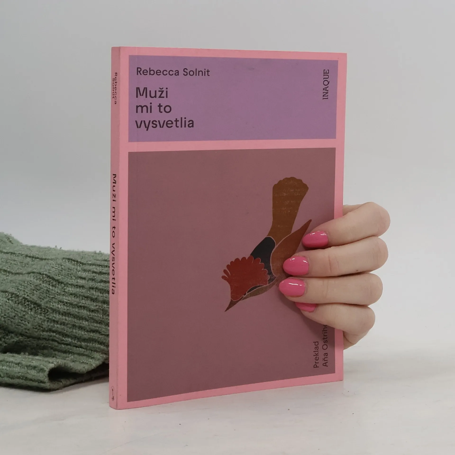 Rebecca Solnit v komickej, ostrej eseji s názvom Muži mi to vysvetlia pomenúva častý problém rozhovorov medzi mužmi a ženami. Píše o mužoch, ktorí mylne predpokladajú, že niečo vedia a ženy to nevedia; píše o tom, kde táto domnienka pramení a ako funguje v praxi. V knihe je okrem tejto, dnes už známej, eseje šesť ďalších vrátane zamyslenia nad spôsobom, akým spisovateľka Virginia Woolf prijala tajomstvo, nevedomosť, pochybnosť a dvojznačnosť; originálne skúmanie rovnosti v manželstve a desivé zhrnutie rozsahu násilia páchaného na ženách. Rebecca Solnit svojím čitateľsky prístupným štýlom dokazuje, že je jednou z najvplyvnejších mysliteliek feministického hnutia. „Muži mi to stále vysvetľujú. A žiaden z nich sa mi nikdy neospravedlnil za to, že mi nesprávne vysvetľoval niečo, čo poznám, ale on nie.“